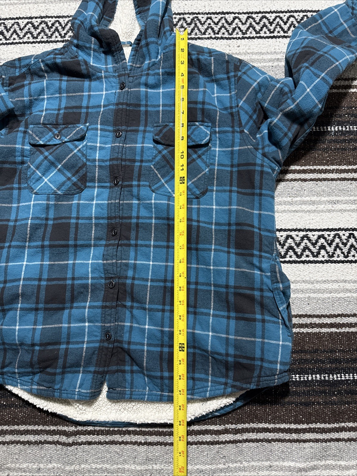 как выглядит Boston Traders Flannel Jacket Womens 2XL Blue Sherpa Lined Long Sleeve Hoodie фото