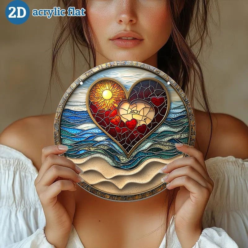 Bohemian Acrylic Suncatcher Romantic Heart Ocean Design Window/Home Decoration