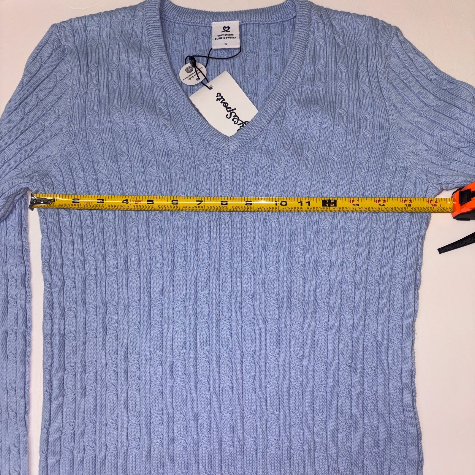 Daily Sports Madeline Belle Blue Womens small or medium Golf Cable sweater NEW