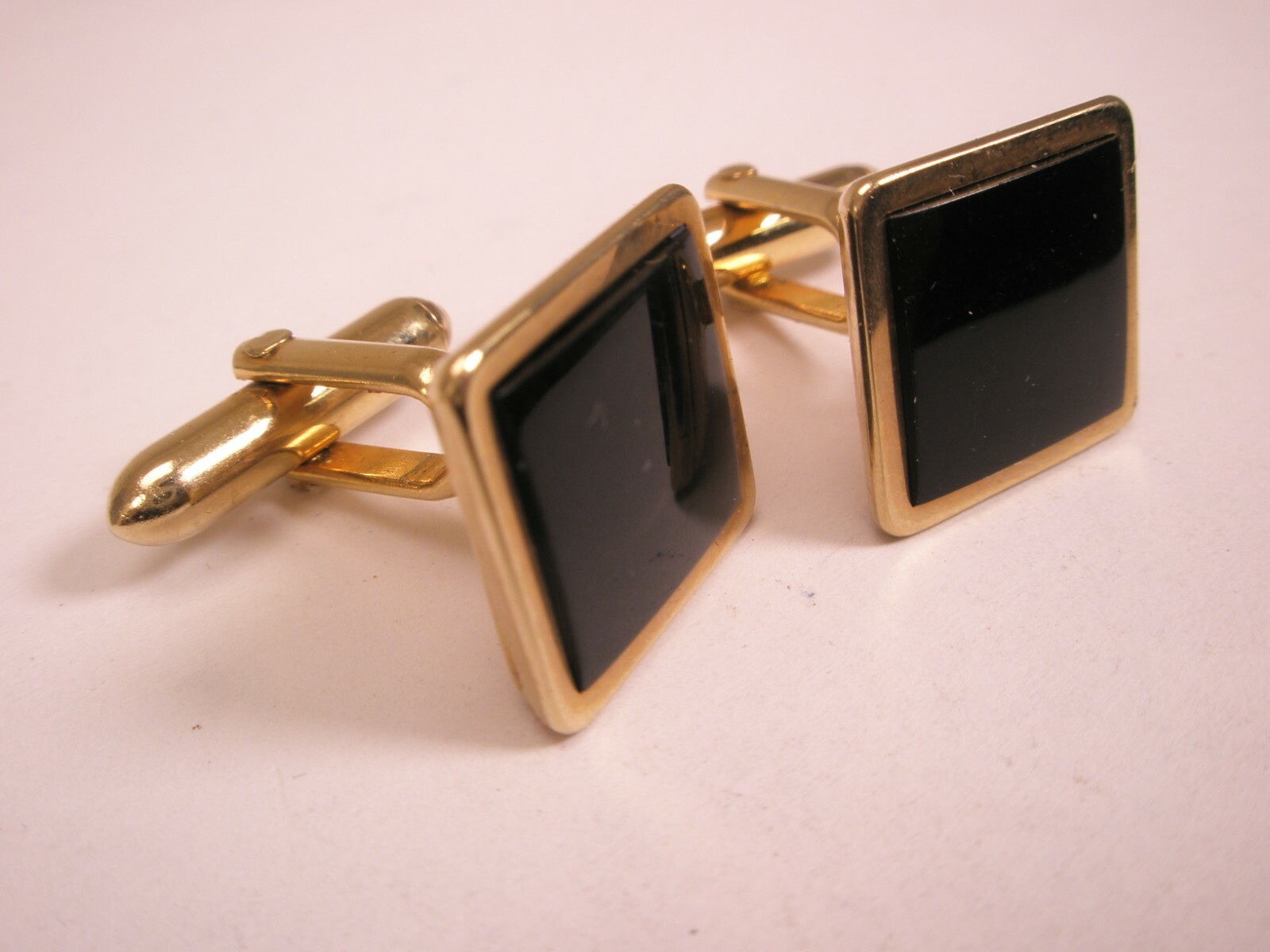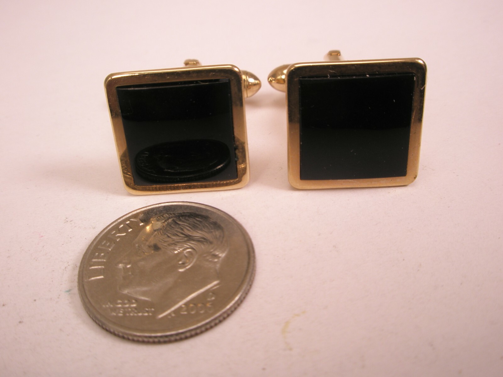 Black Square Formal Vintage SWANK Cuff Links 3 Tux Shirt Studs groom prom p48