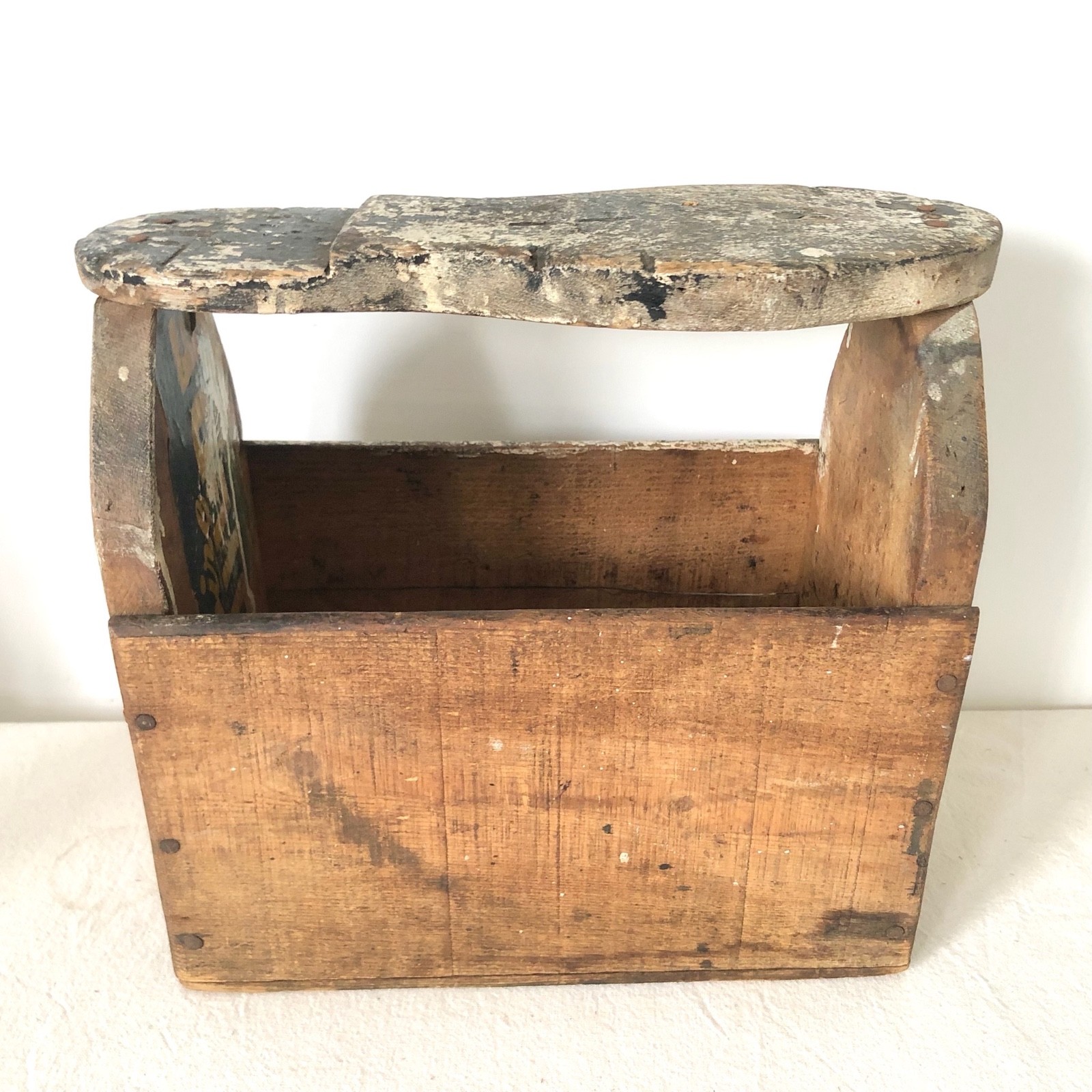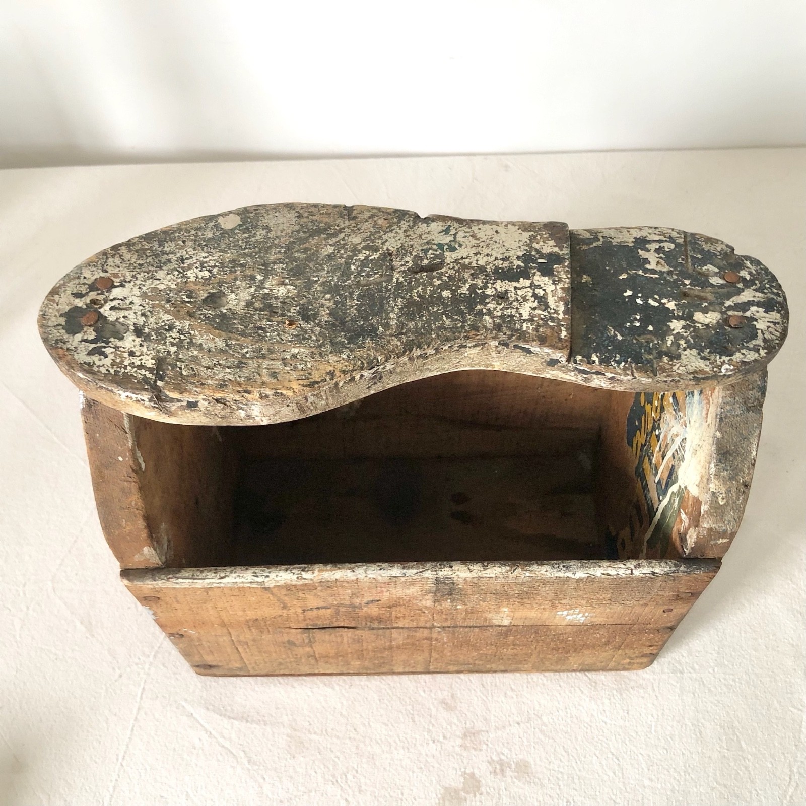 Vintage Shoe Shine Wood Box - Folk Art Homemade Old Shoe Shine Carrying Tote Box
