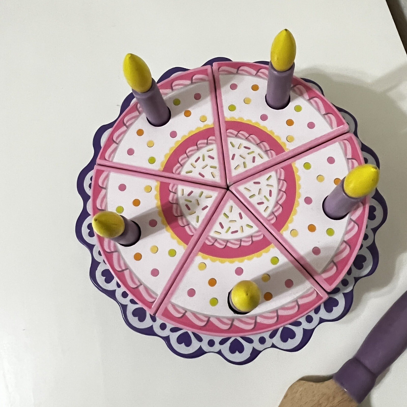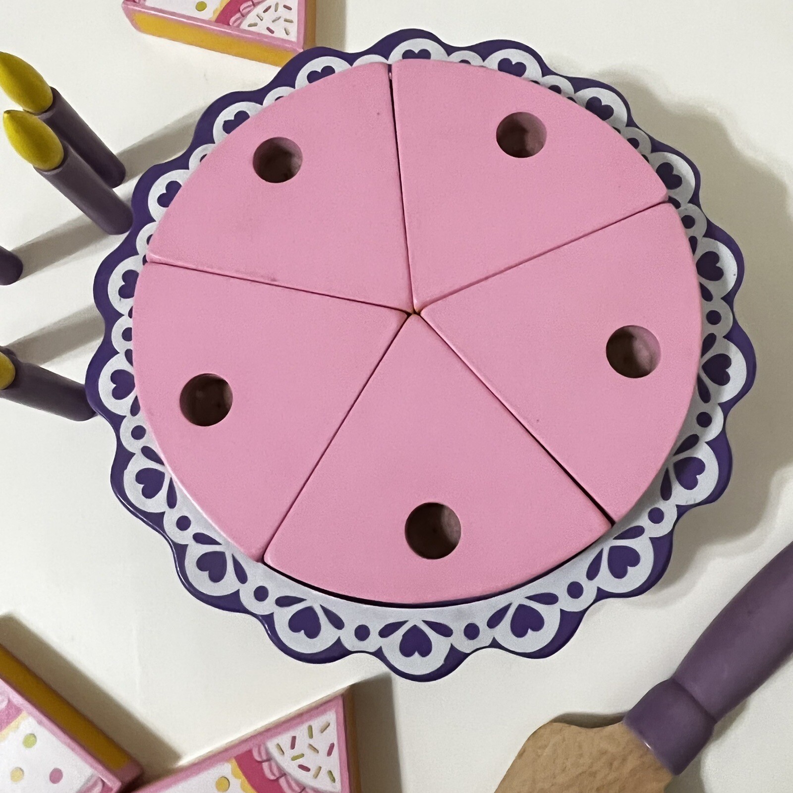 как выглядит KidKraft Birthday Cake Wooden Playset 17 Piece Play Set Cake Candles Pink Purple фото