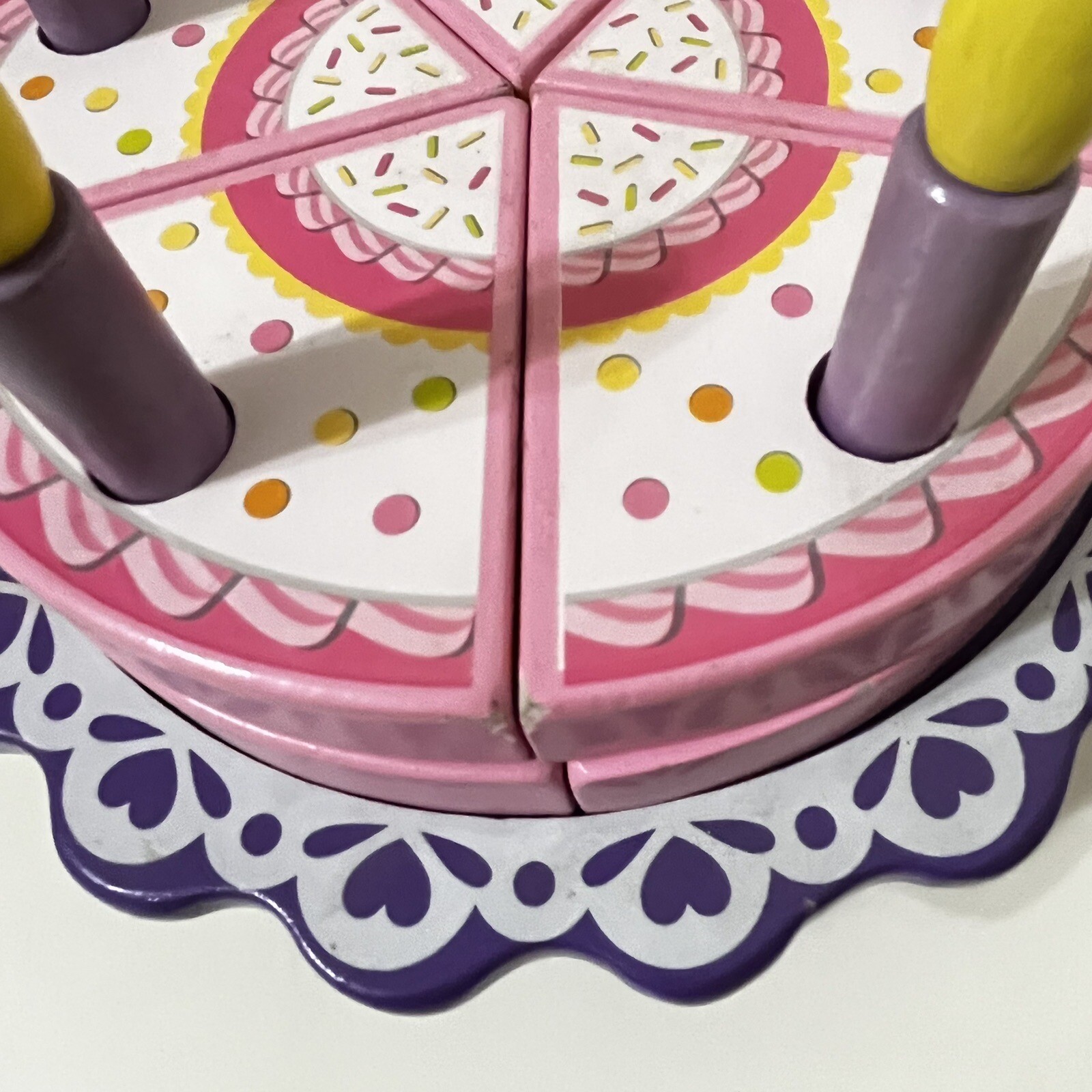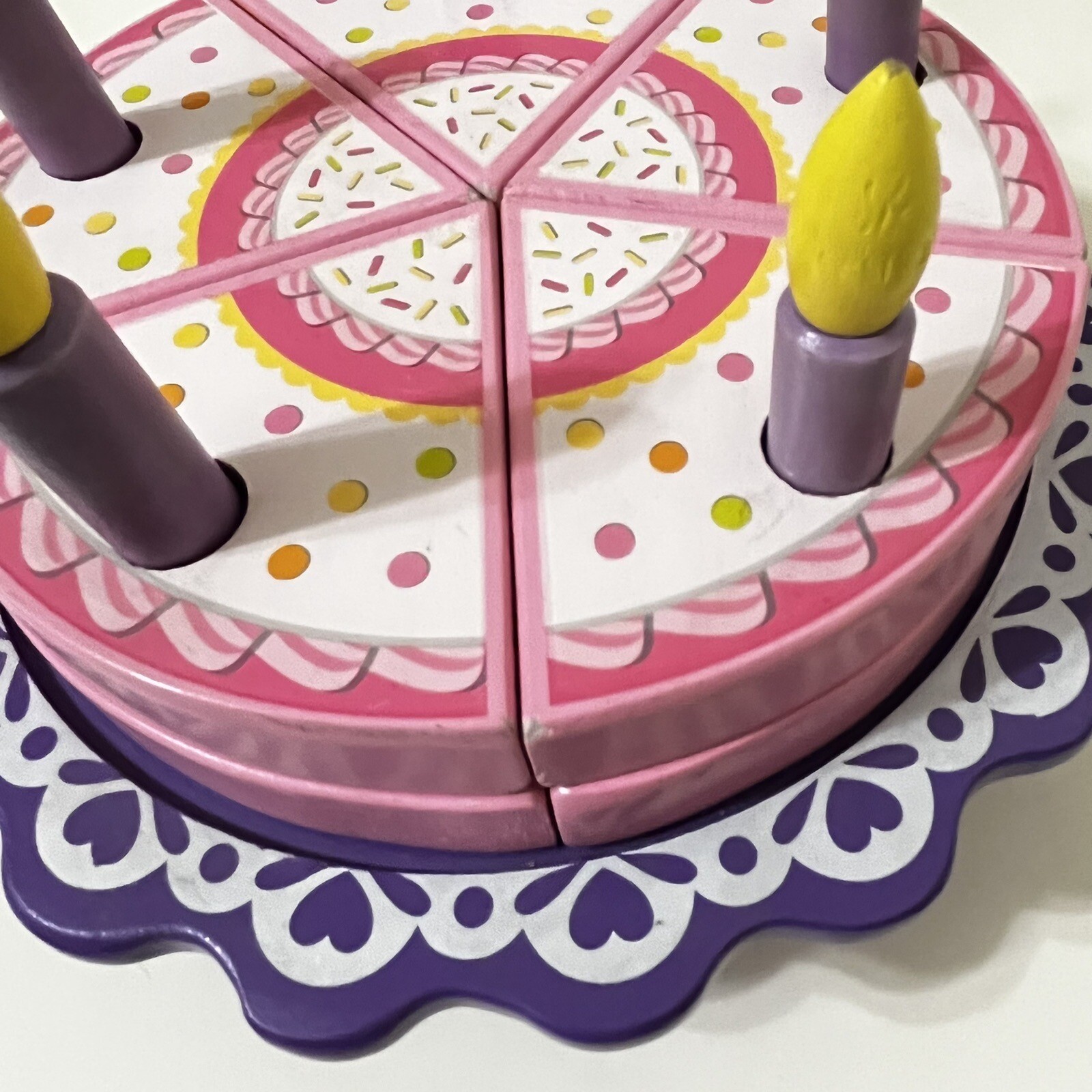 KidKraft Birthday Cake Wooden Playset 17 Piece Play Set Cake Candles Pink Purple