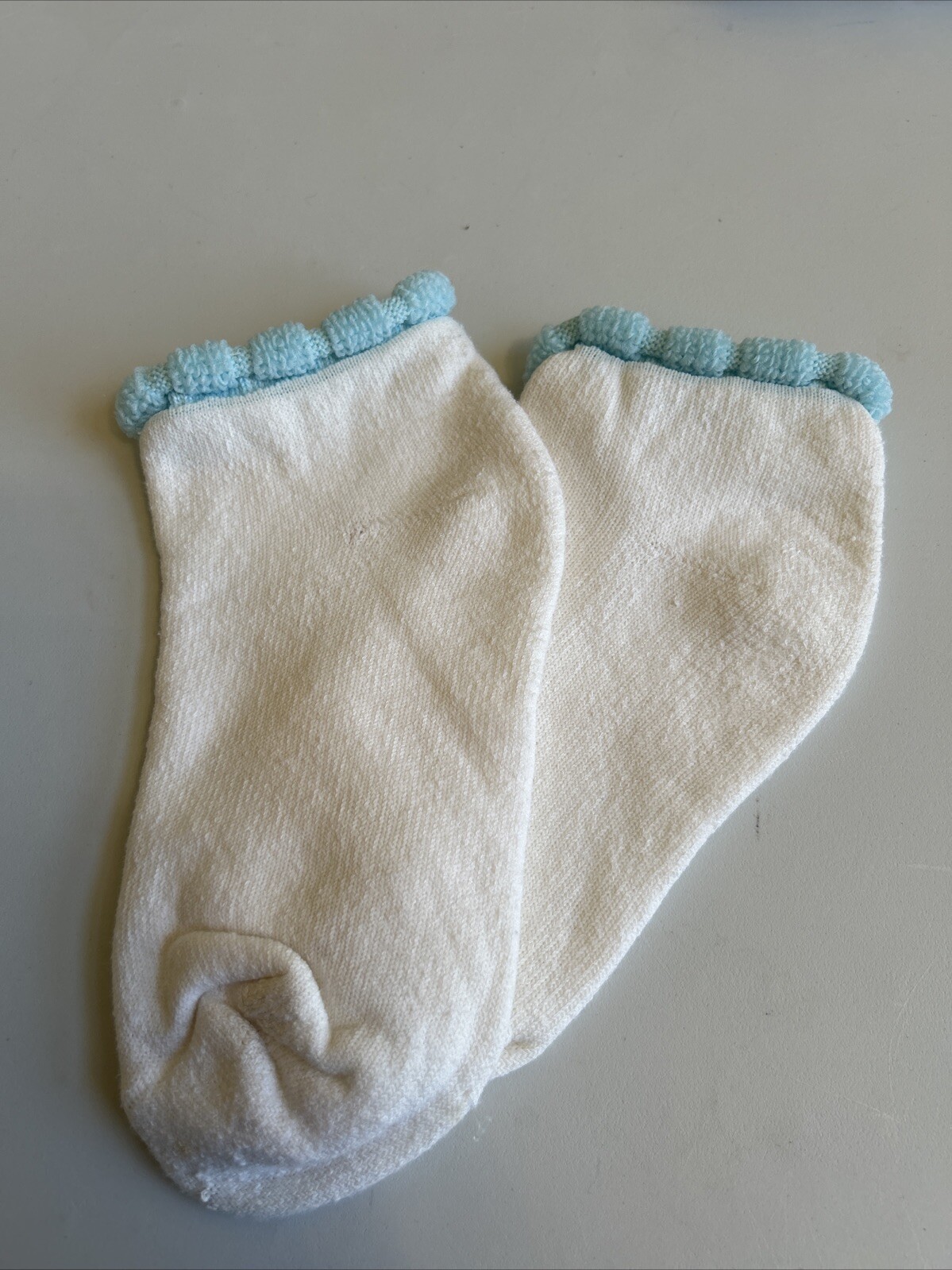 VTG Socks Ladies Acrylic Blend White Low Cut Ankle Baby Blue NOS Size 9-11 90s.