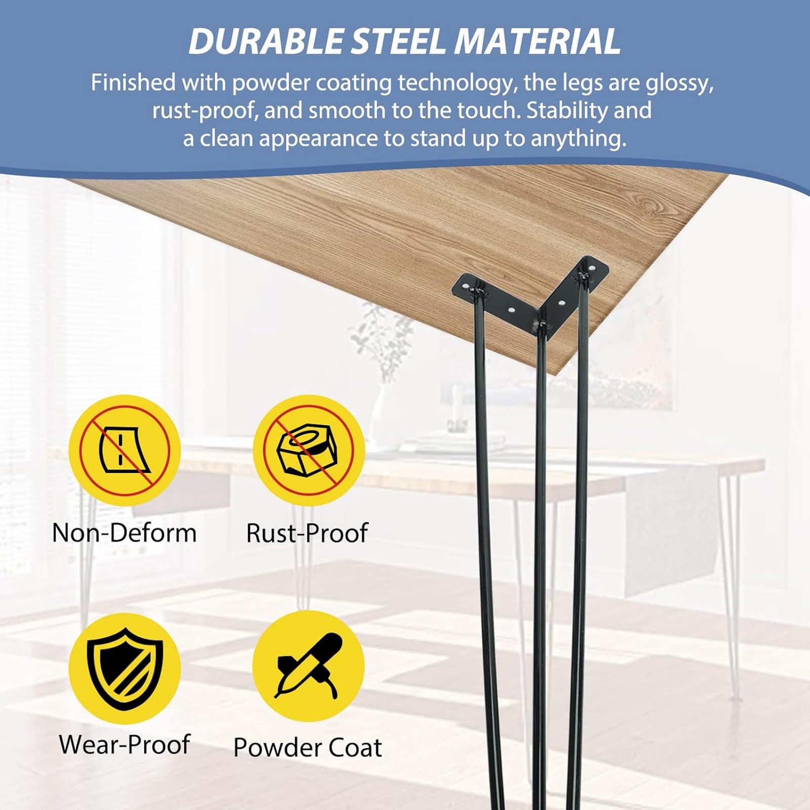 Hairpin Table Legs 40 Inch, 3-Rod Heavy Duty Metal Coffee Table Legs Black