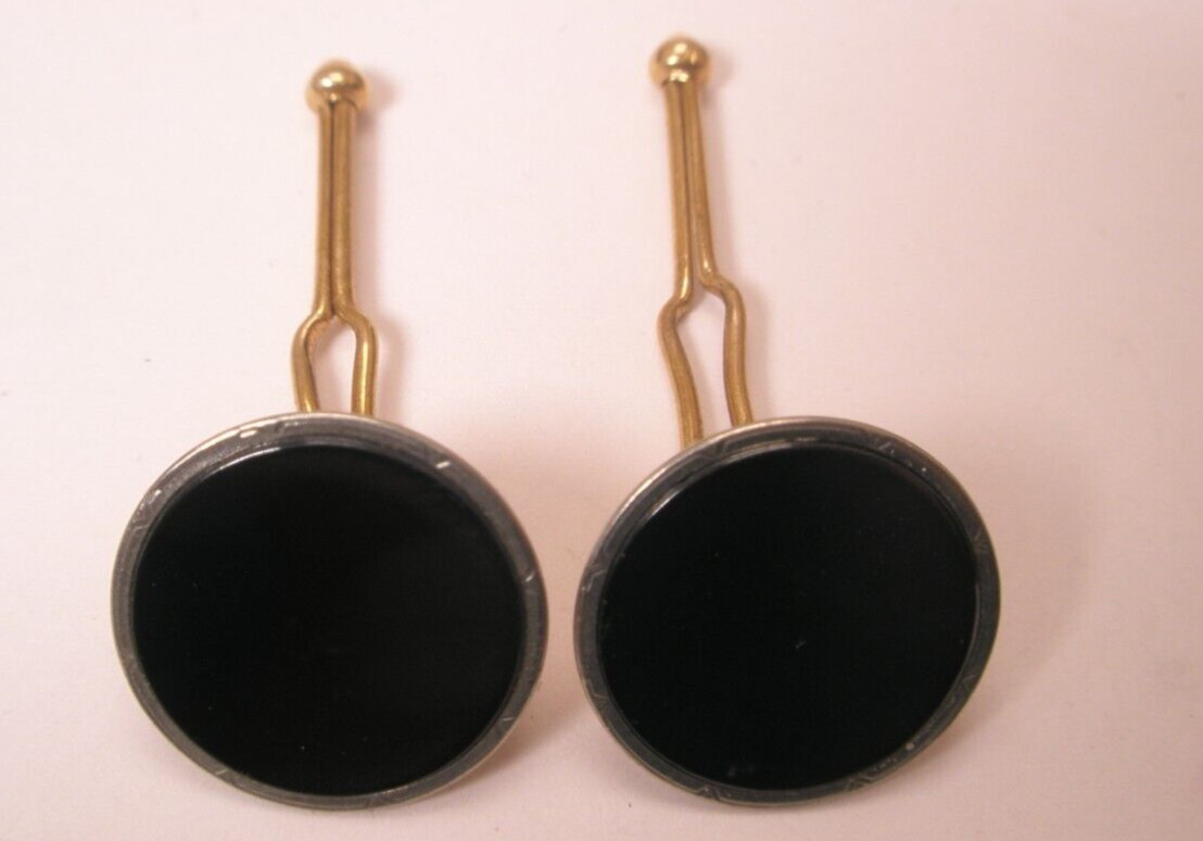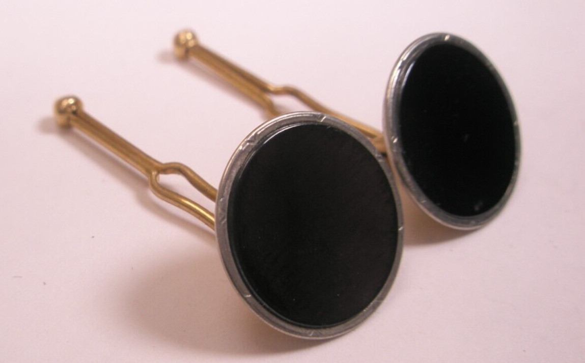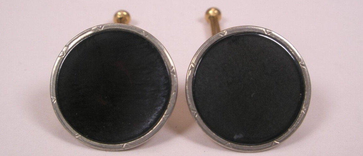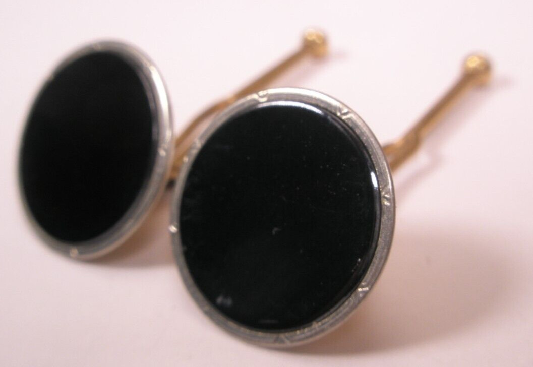 SINGLES 2 9/16 Round Black Gold Plate Vintage SWANK Formal Shirt Stud b233