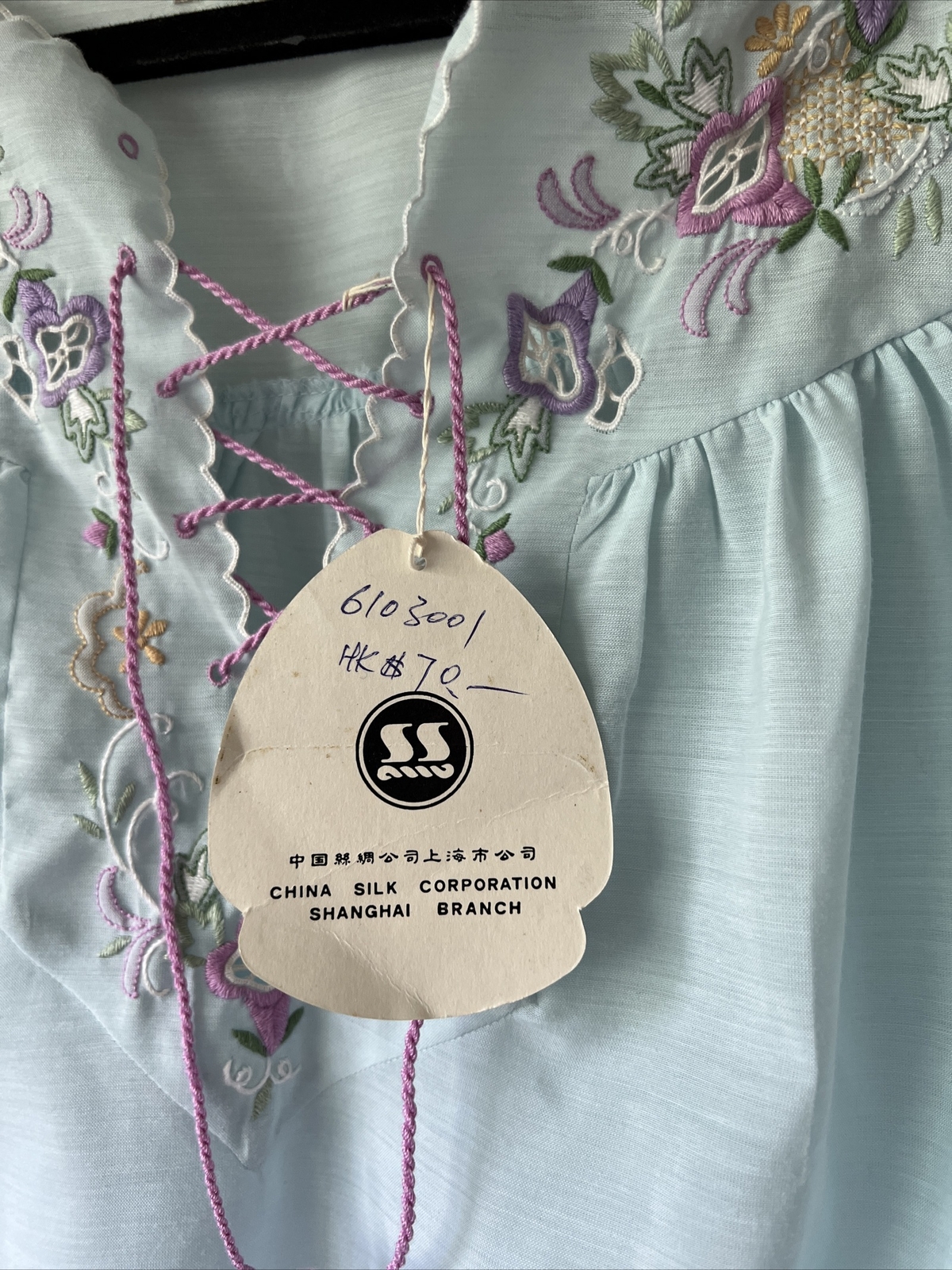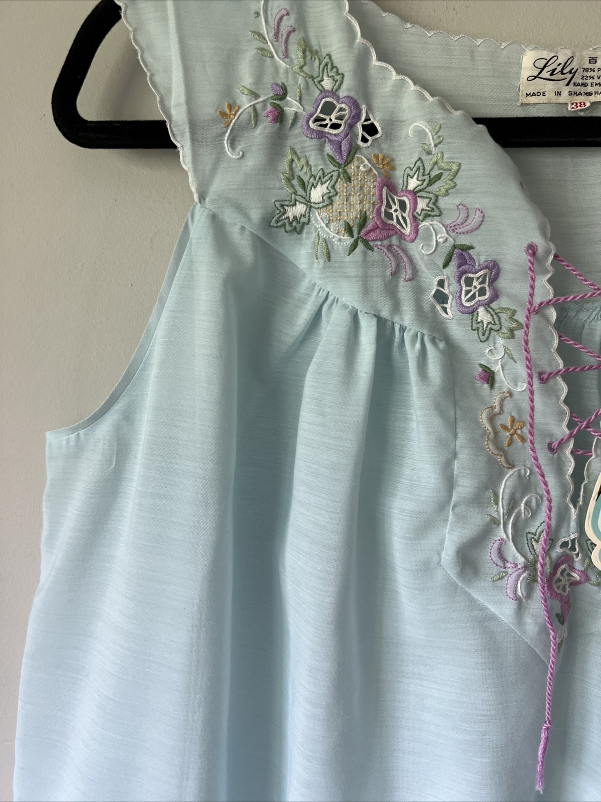 как выглядит Vintage 1960s Lily Hand Embroidered Lightweight Nightgown Blue NWT L XL фото