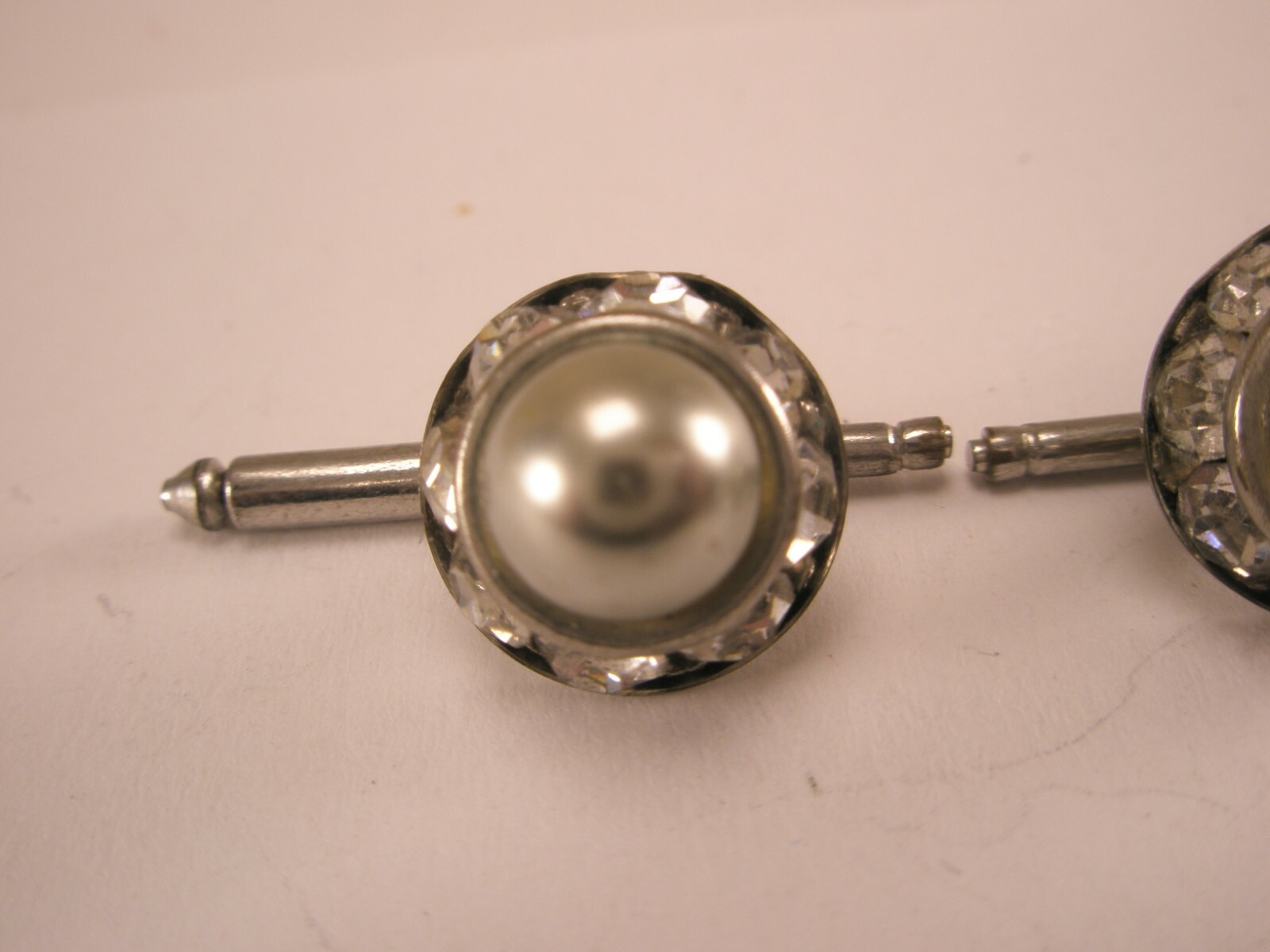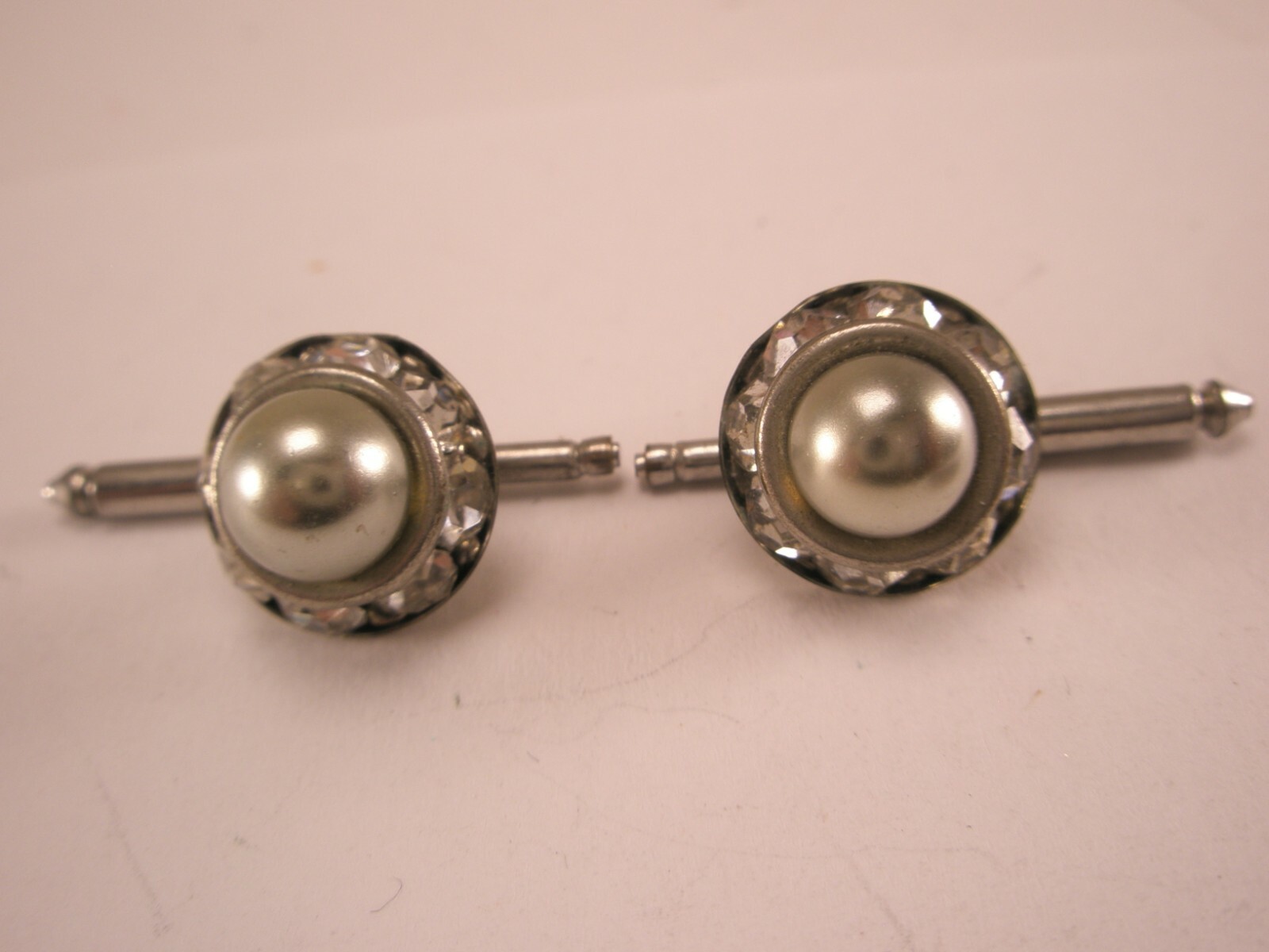 SINGLES 2 7/16 Faux Pearl Rhinestone Vintage Formal Groom Tuxedo Studs g14