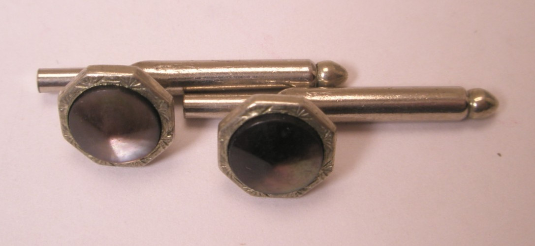 SINGLES 2 5/16 Gray MOP Octagons Vintage Formal Tuxedo Prom Shirt Stud c239