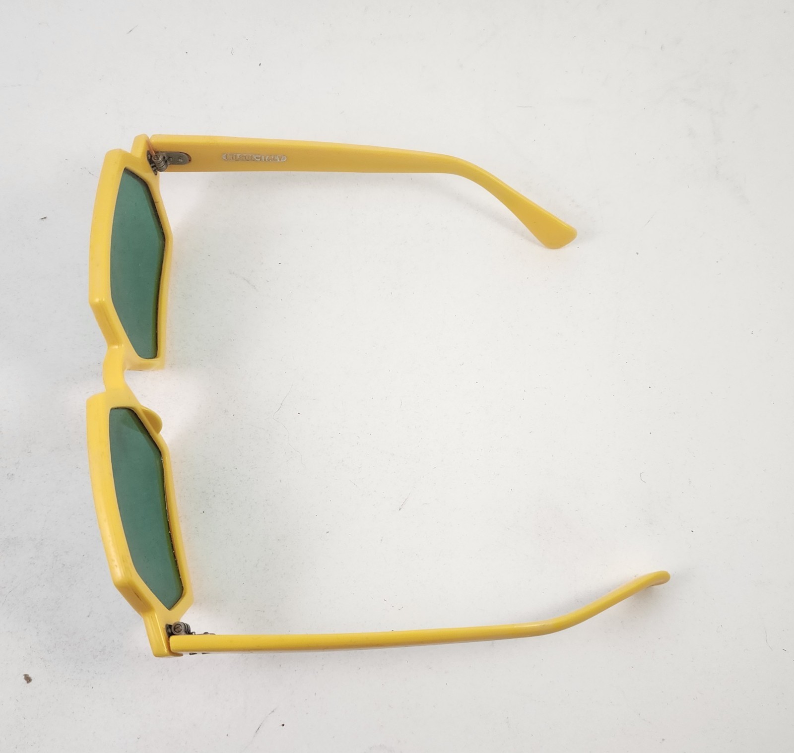 Vintage 1970's Nilsol Italy Sunglass Yellow Frames Hexagon Green Lenses