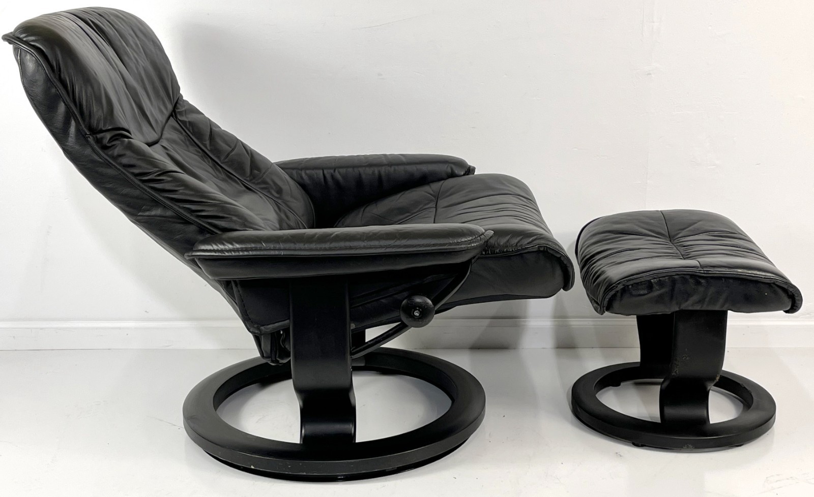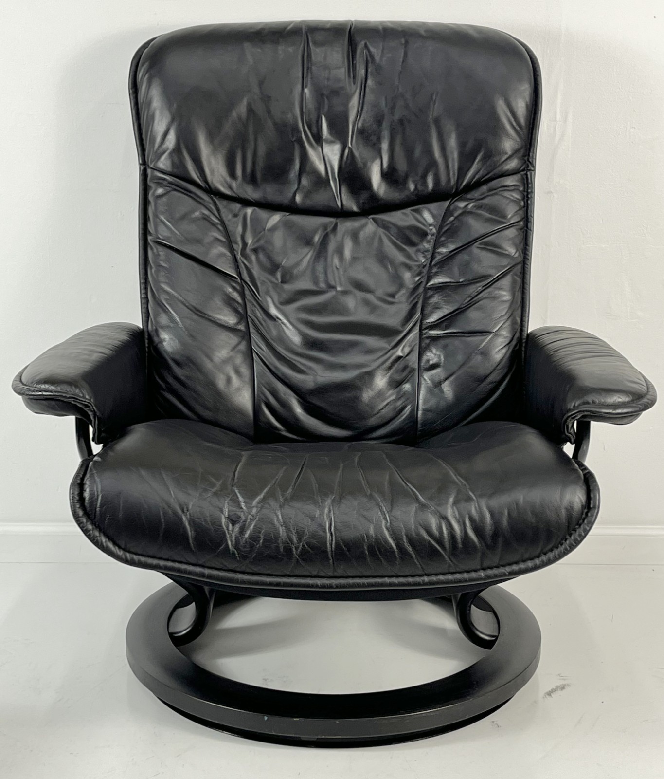 Ekornes Stressless Large President Black Leather Swivel Recliner Chair Ottoman