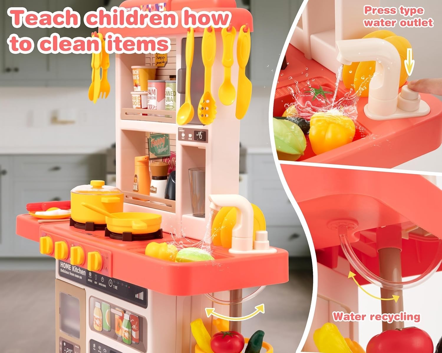 Kids Kitchen Play Set Interactive Kids Kitchen Play Set with 50Pcs of Pretend...