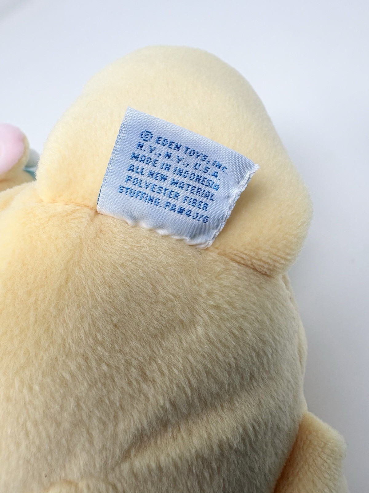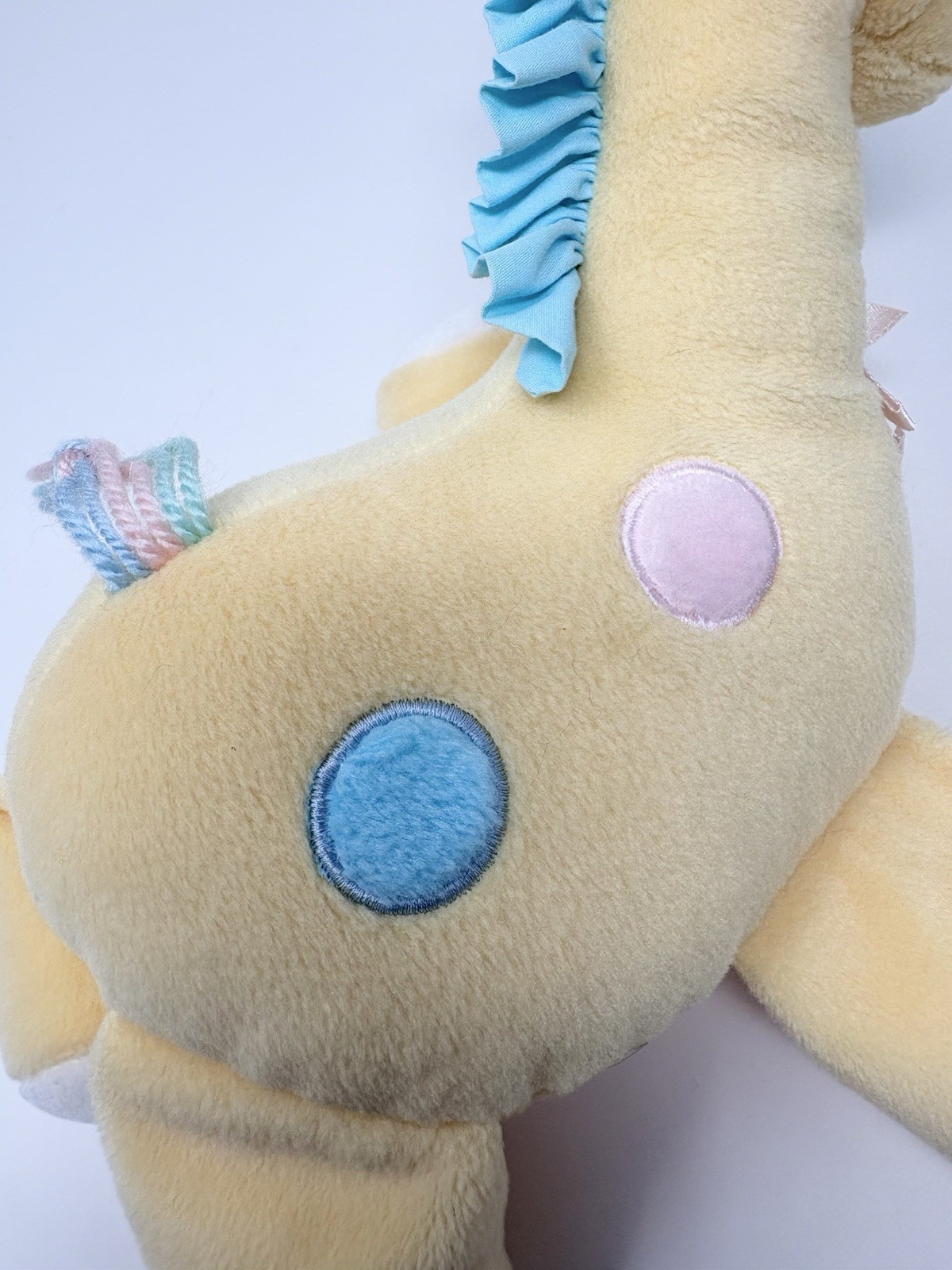 как выглядит Eden Yellow Giraffe Plush Blue Pink Pastel Spots Yarn Tail Baby Toy Vtg 11 фото
