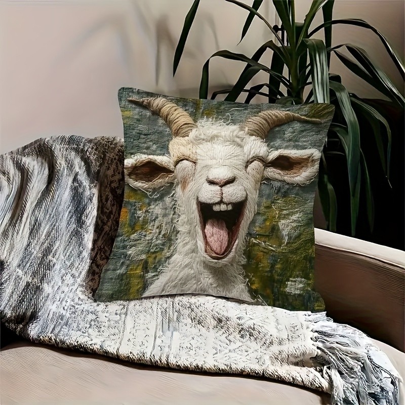 Funny Goat Pillow Cover Decorative Throw Cushion Case for Couch Home Decor Gift