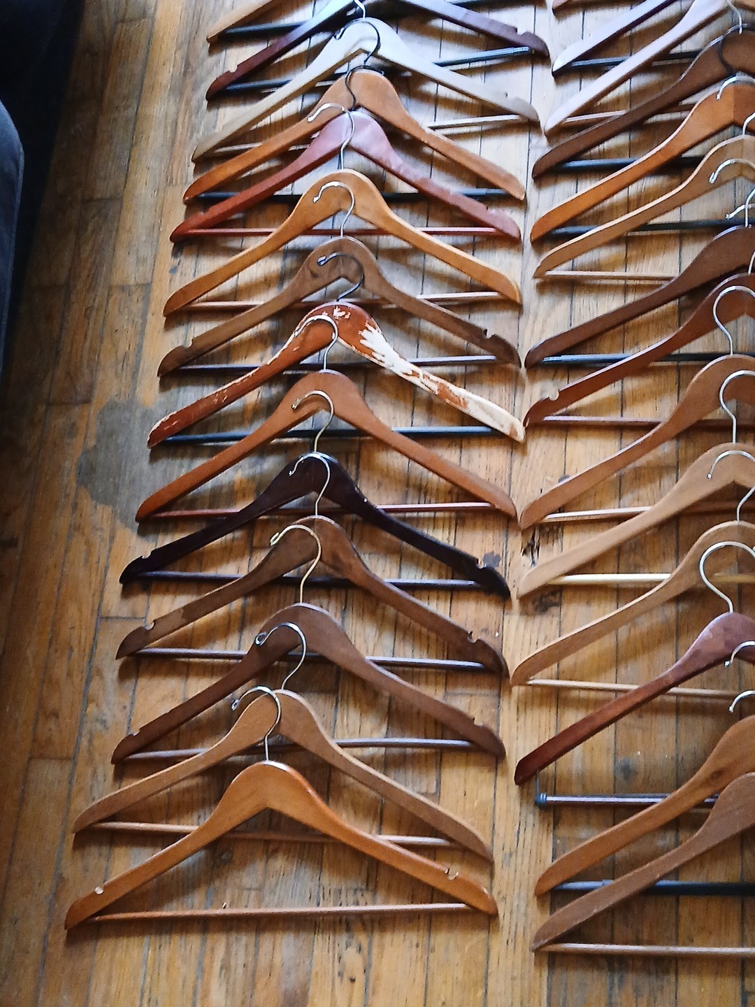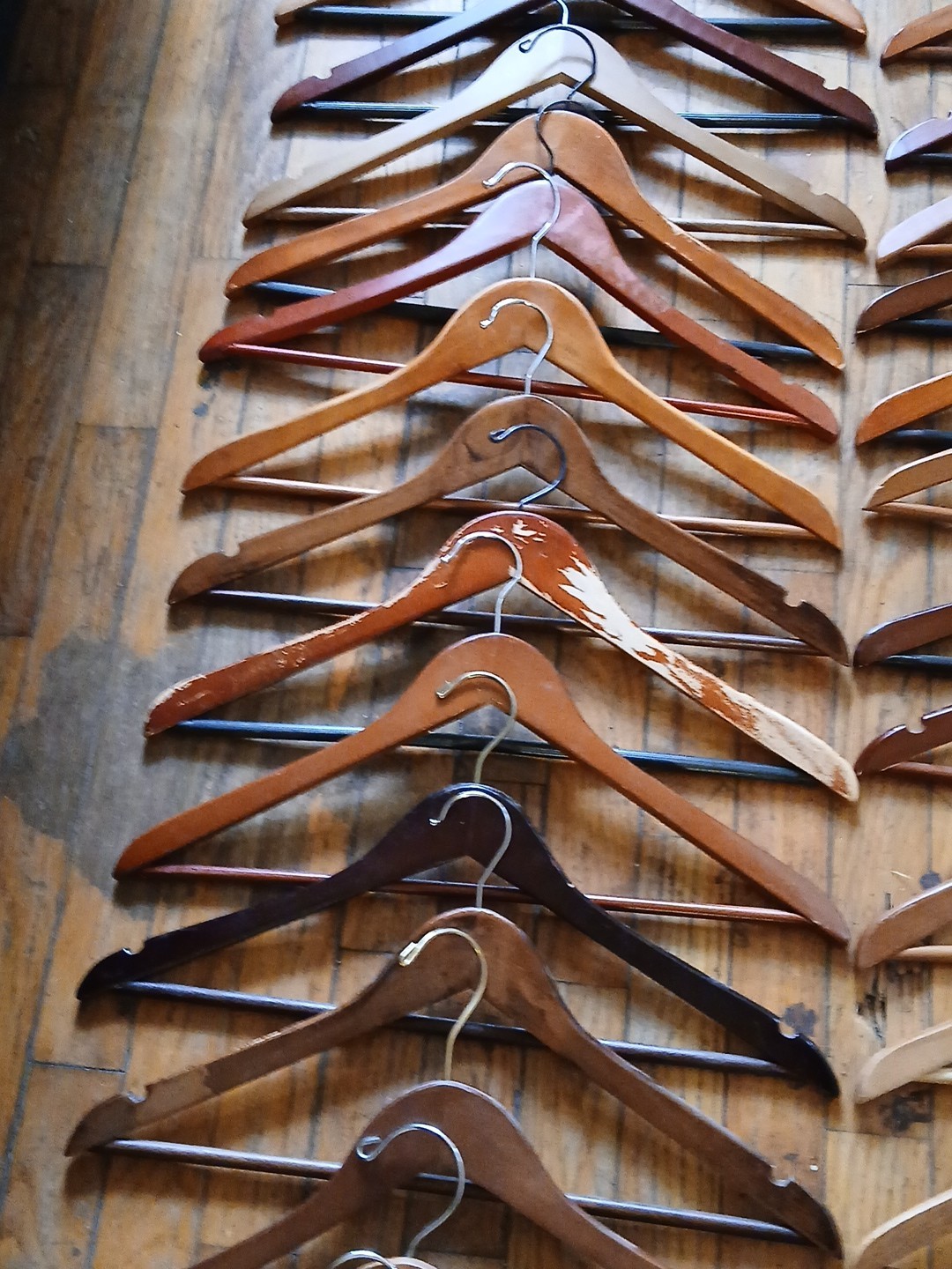 Lot 55 Vintage Dark Wooden Clothes Clothing Hangers Trousers Advertising Antique