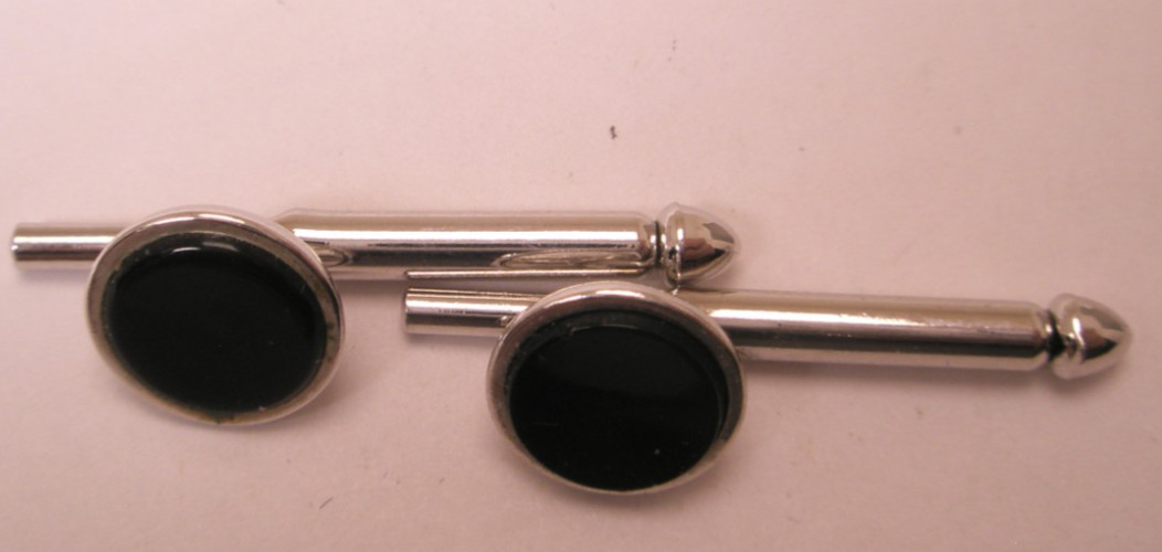 SINGLES 2 5/16 Black Silver Tone Vintage SWANK Formal Tux Shirt Stud b295