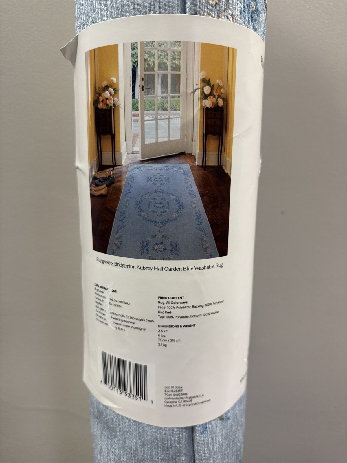Ruggable 2.5 x7' Washable Bridgerton Aubrey Hall Garden Blue Runner Rug Washable