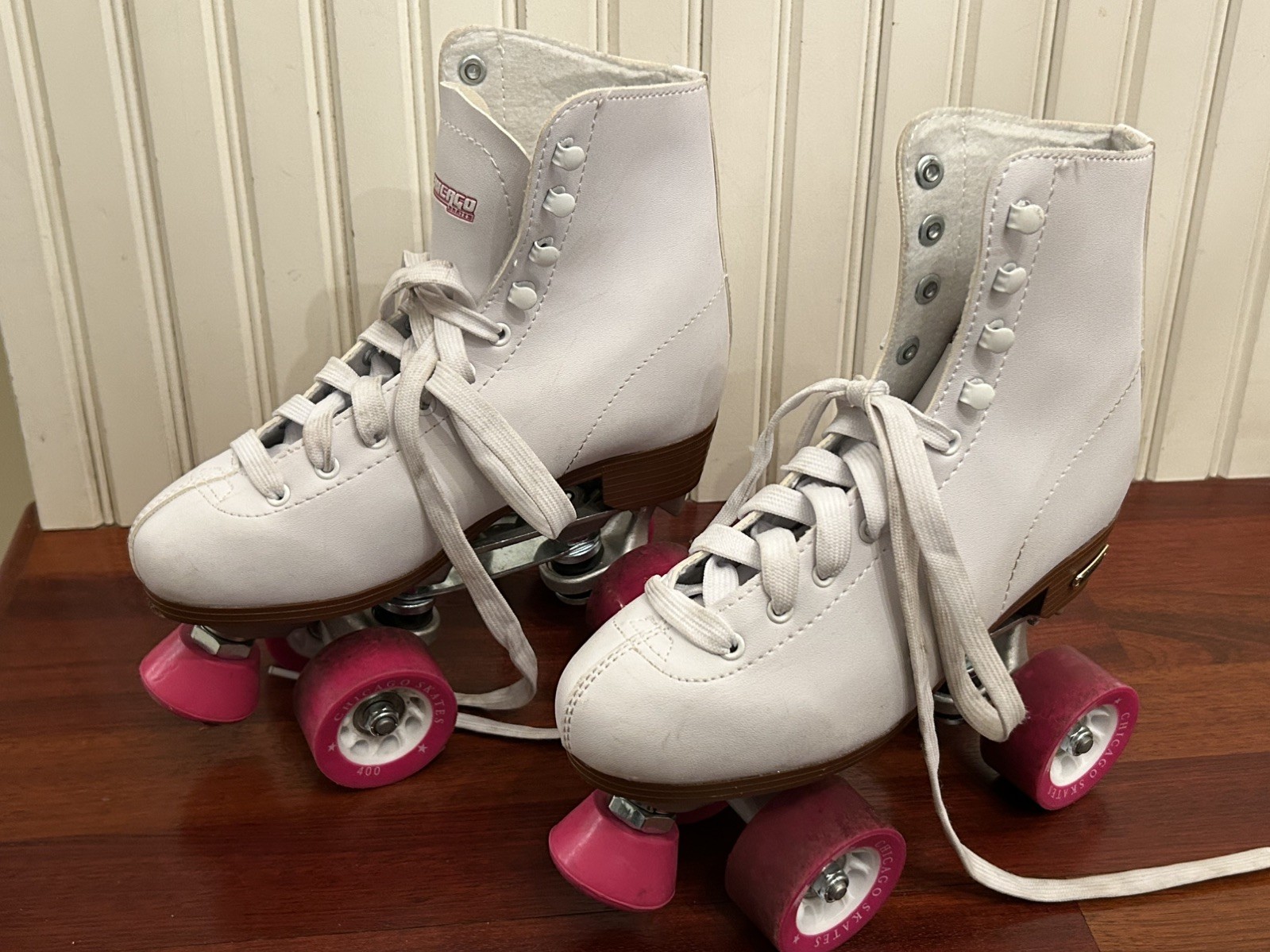 Womens Chicago Roller Skates Quads Size 6 White And Pink Wheels With Stopper