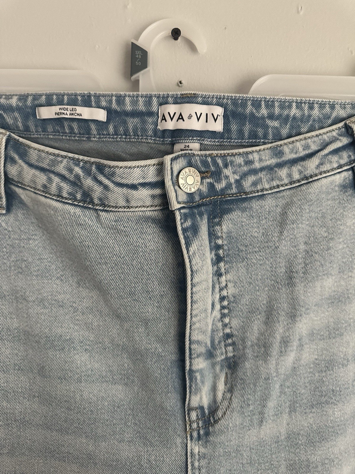 как выглядит 24 wide leg jeans high rise relaxed fit NWT Ava viv 24r stretch 3xl light wash фото