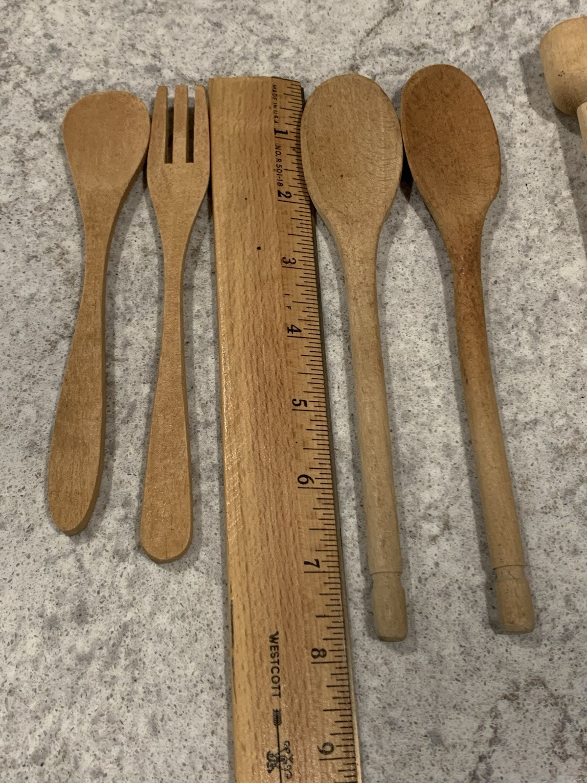 как выглядит Vintage Wood/Metal Child s Pretend Play Kitchen Utensils/Iron/Whisk/Strainer фото