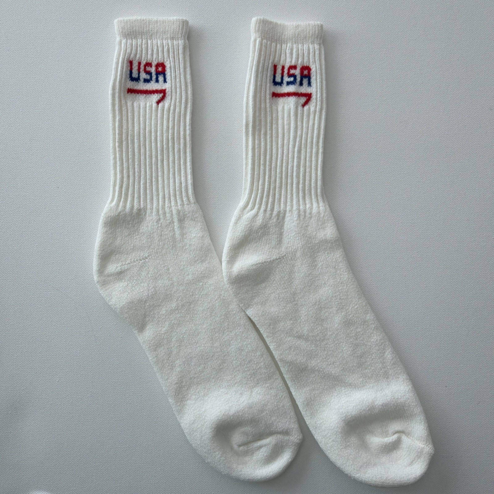 VTG Socks NOS 1980's 90's 9-11 USA Sports White Red Blue Cotton Crew