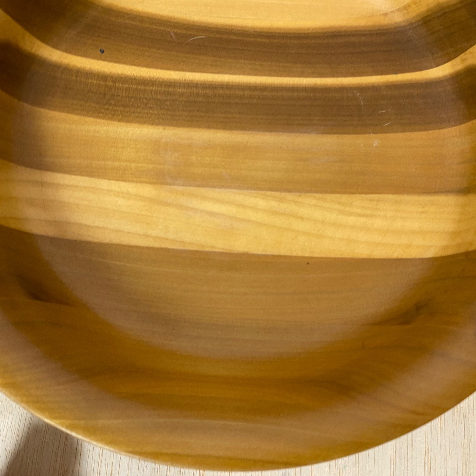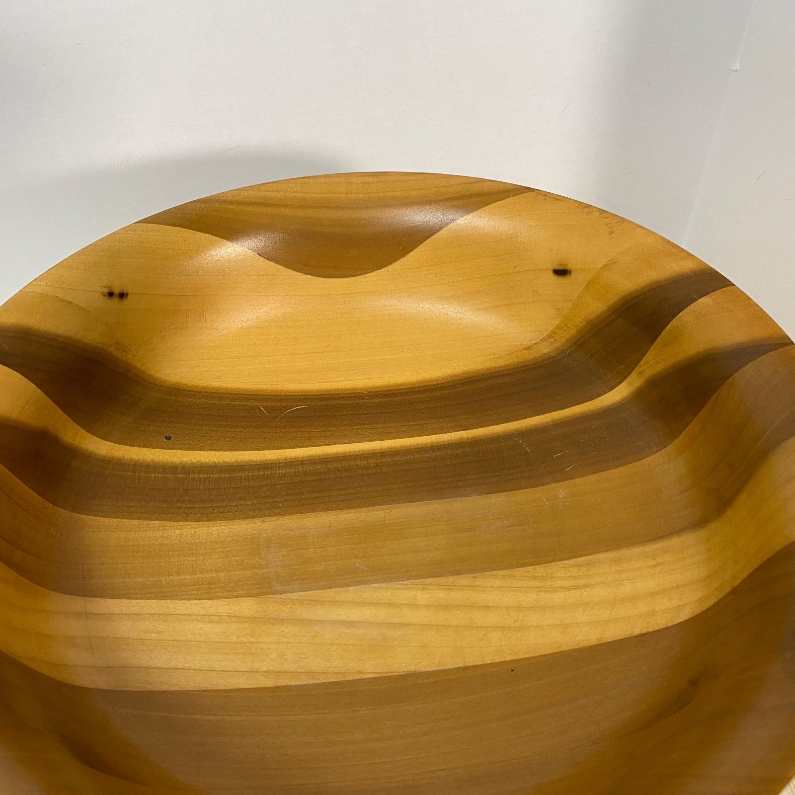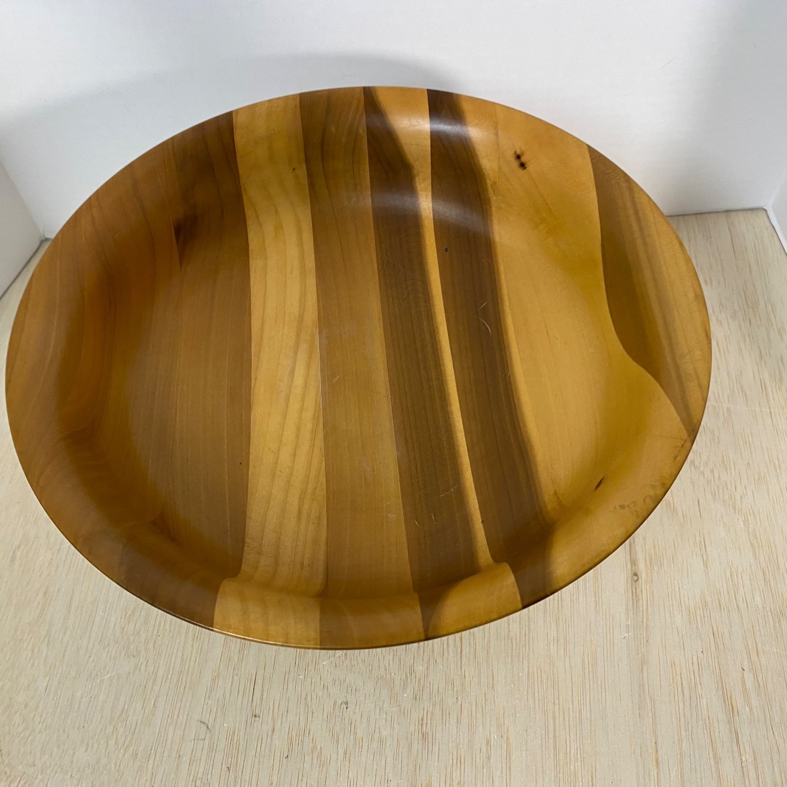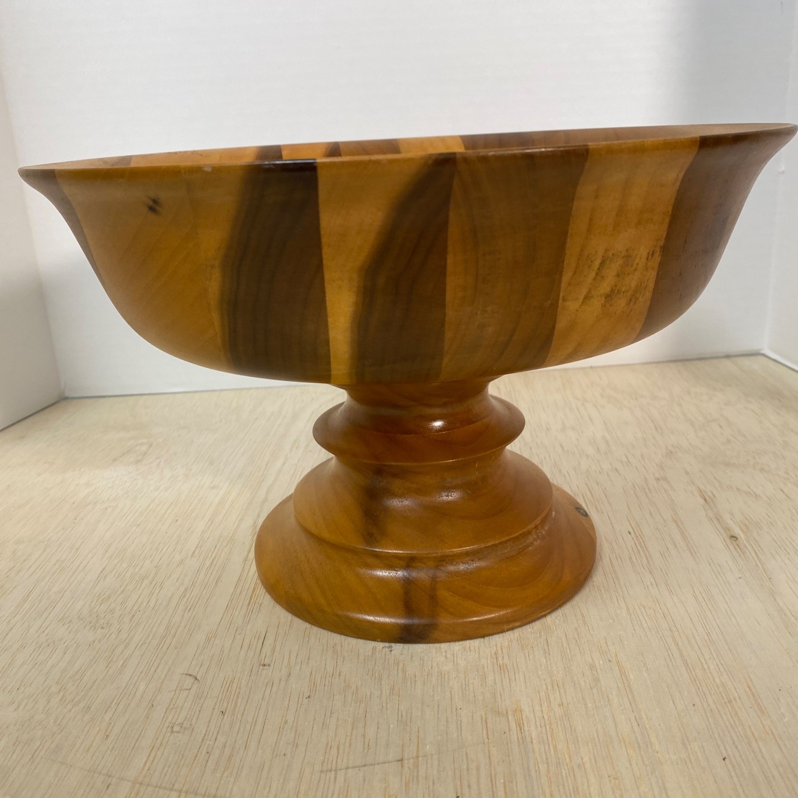 • Vintage Turned Wood Bowl On Pedestal Light Stain Nice Color Variations