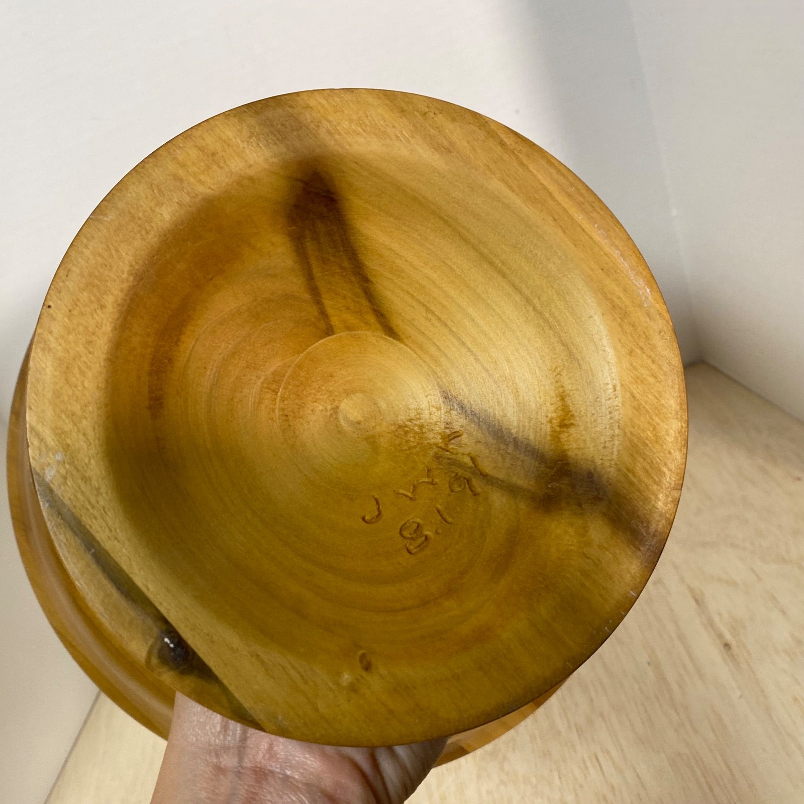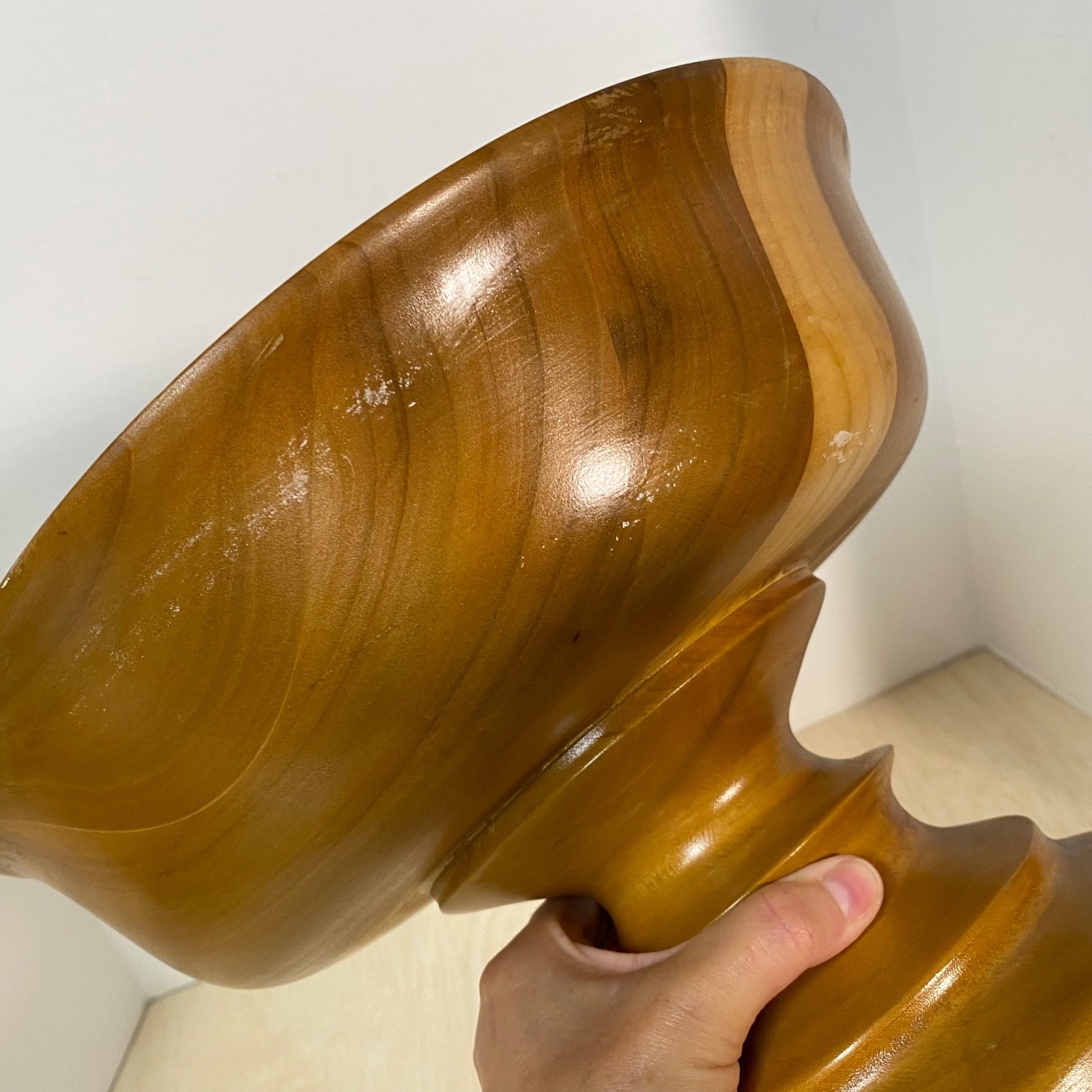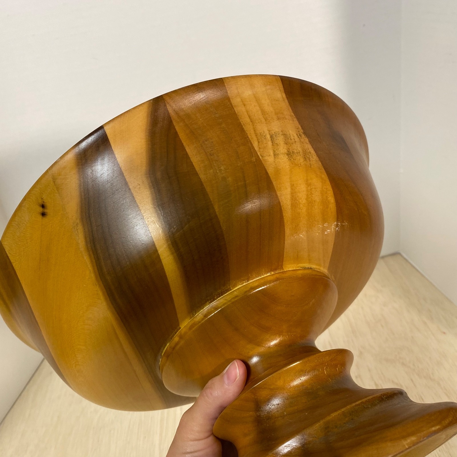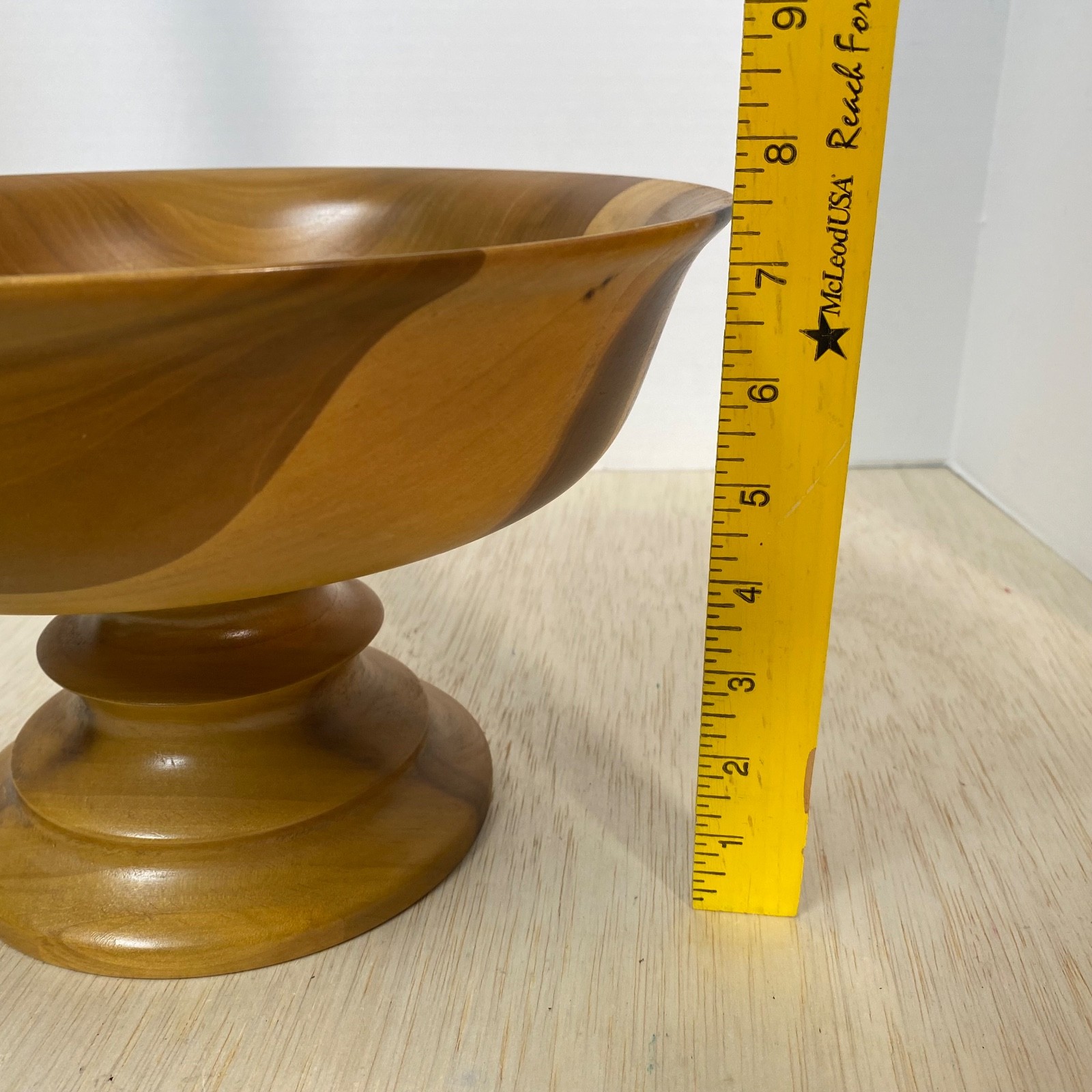 как выглядит Vintage Turned Wood Bowl On Pedestal  Light Stain  Nice Color Variations фото