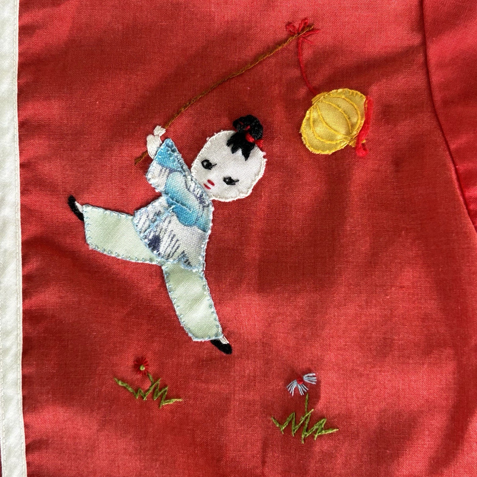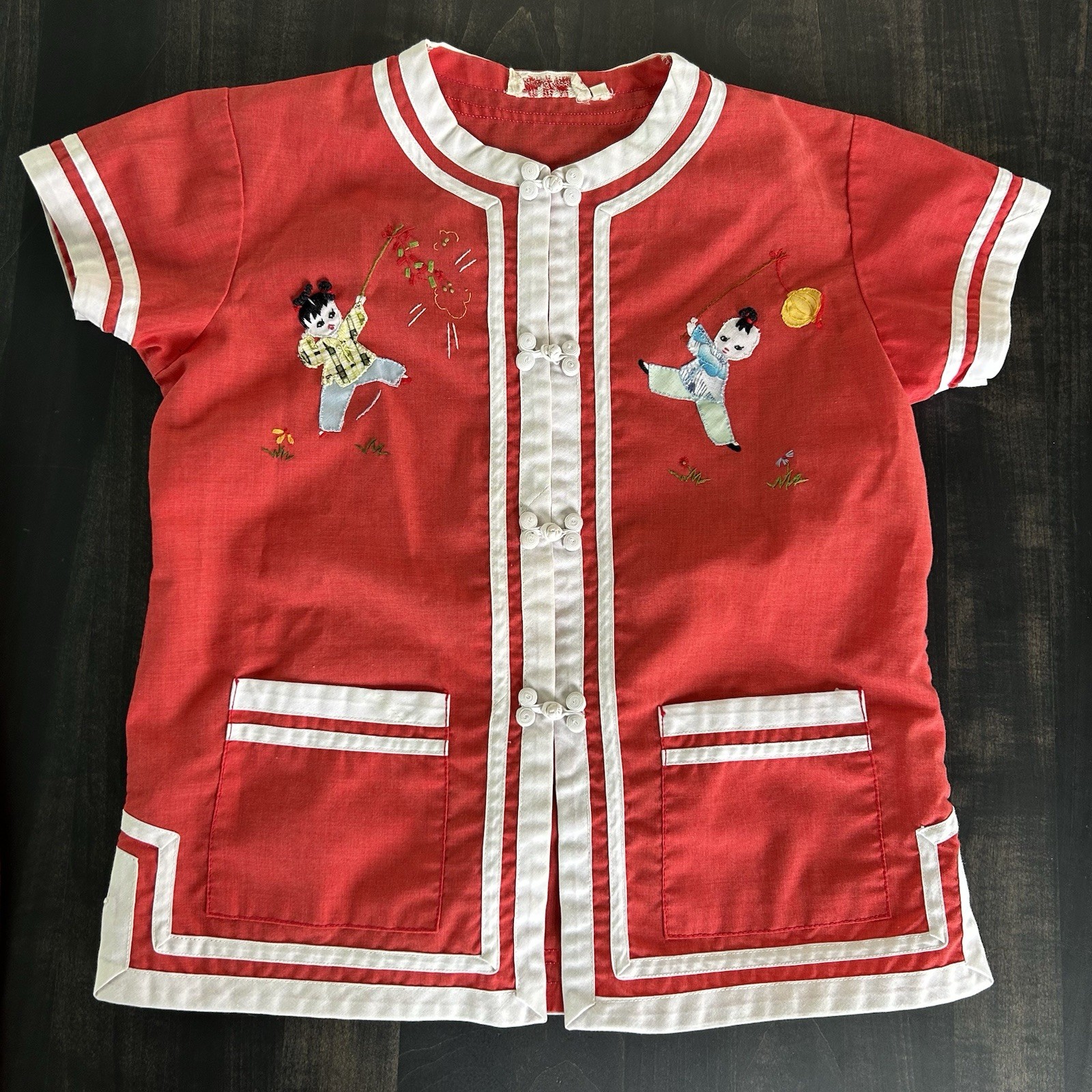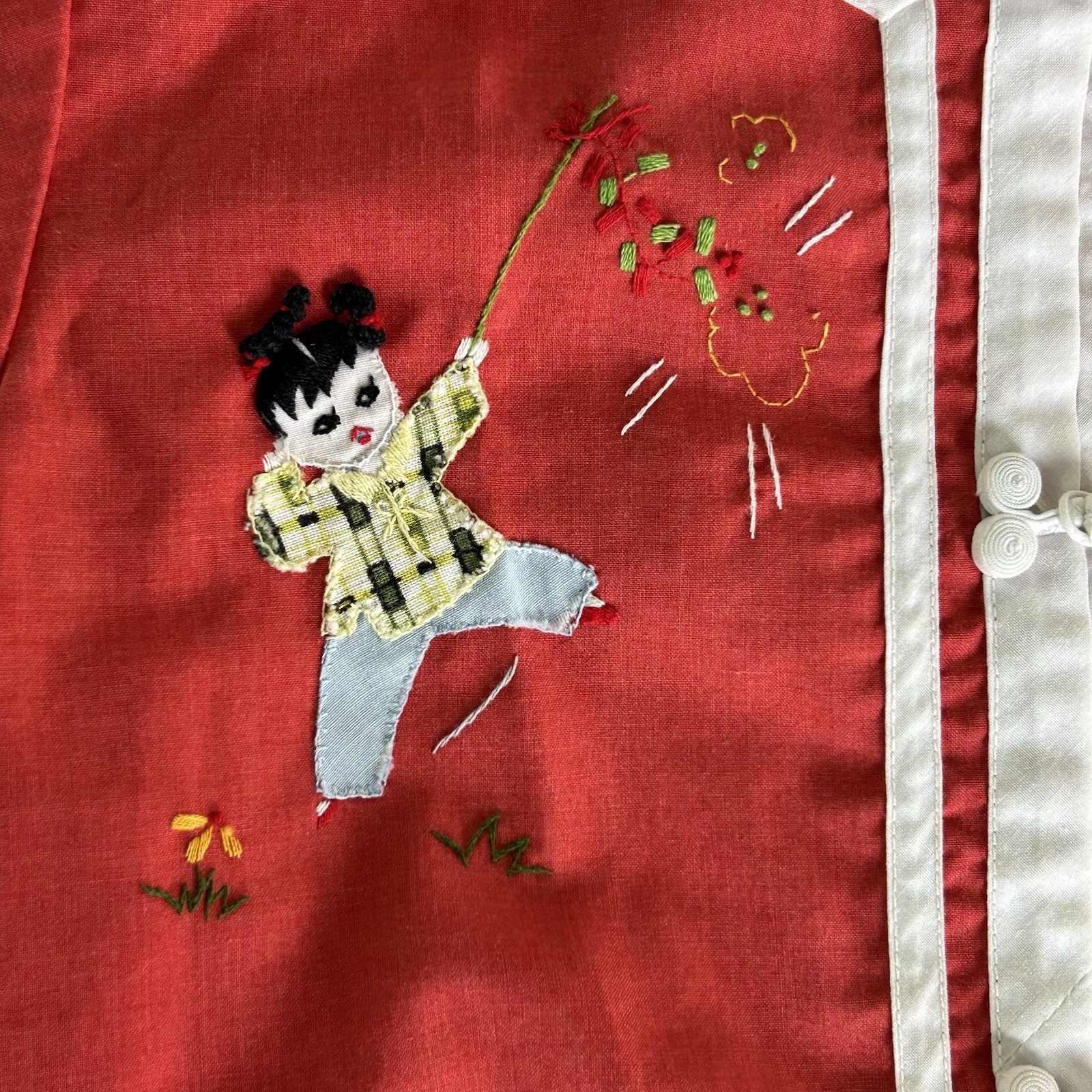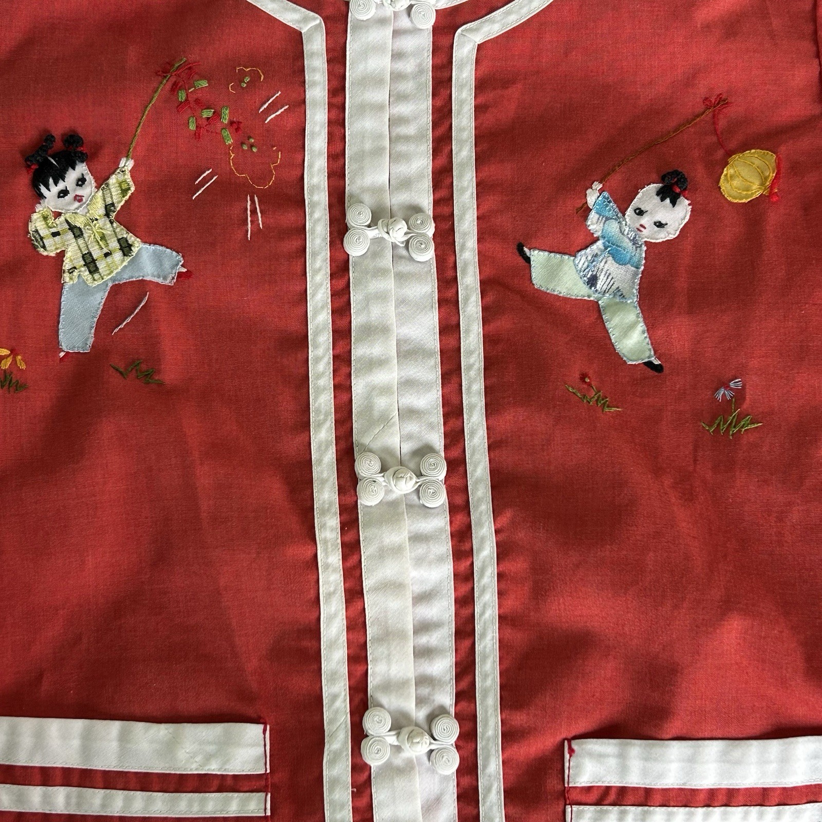 Vintage Plum Blossoms Youth Sz 6 Asian Pajama Set Embroidered Lightweight READ