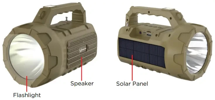 Solar Recharge, Bluetooth Speaker, MP3 Player, Flashlight, Lantern, FM Radio