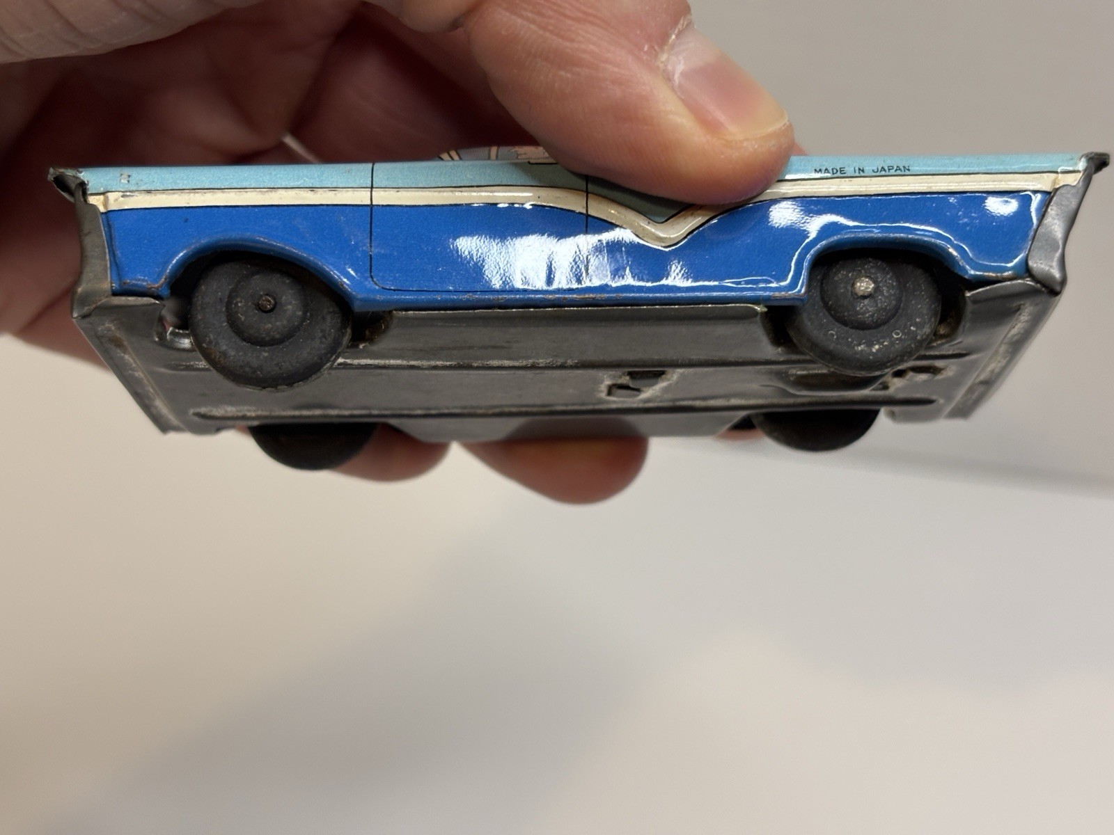 Vintage Blue 1958 Ford Fairlane Tin Friction Toy, 4 Made In Japan