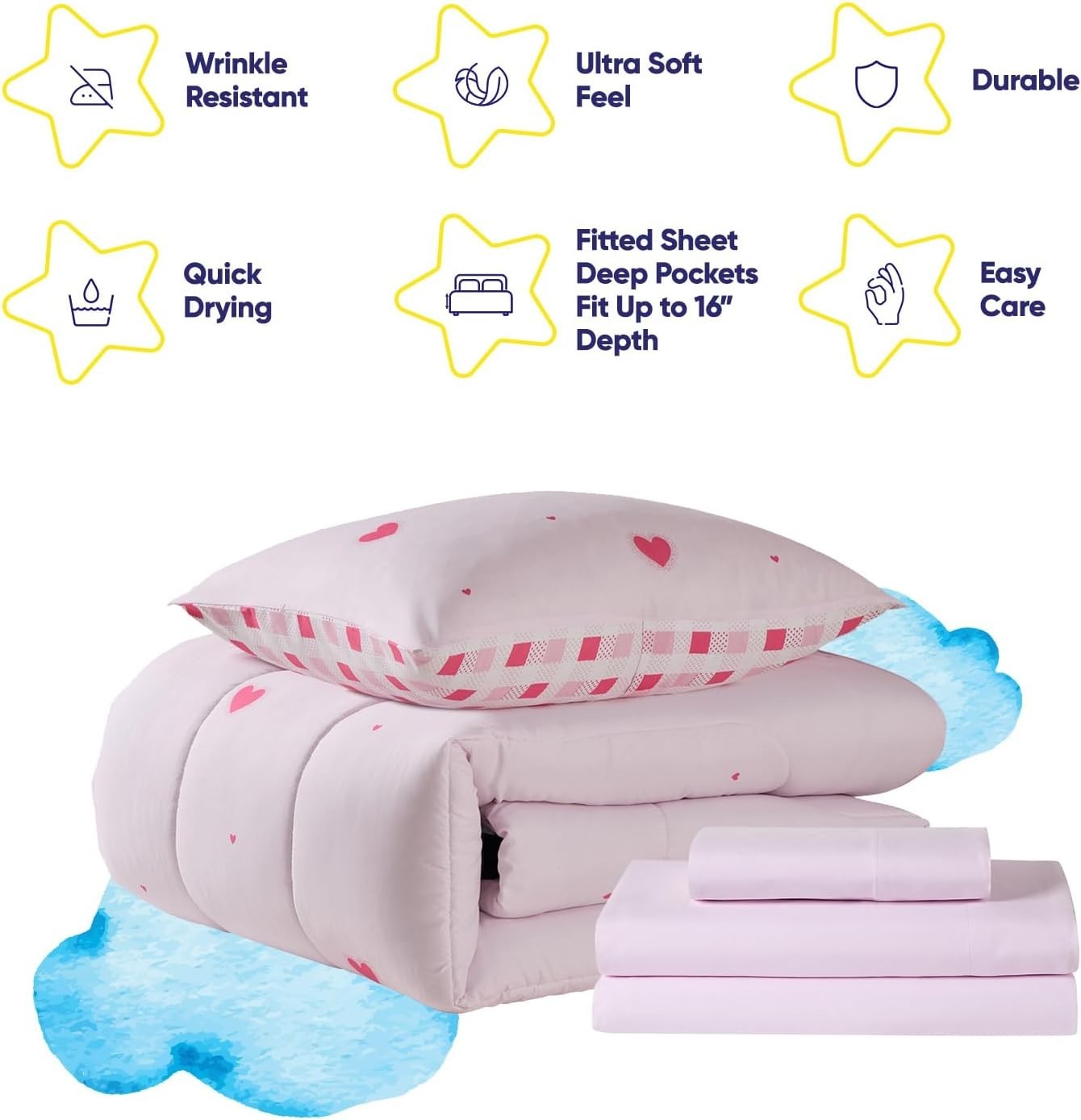 Heart Comforter Set Twin Size for Girls Soft Pink Bed in a Bag with Sheets,...