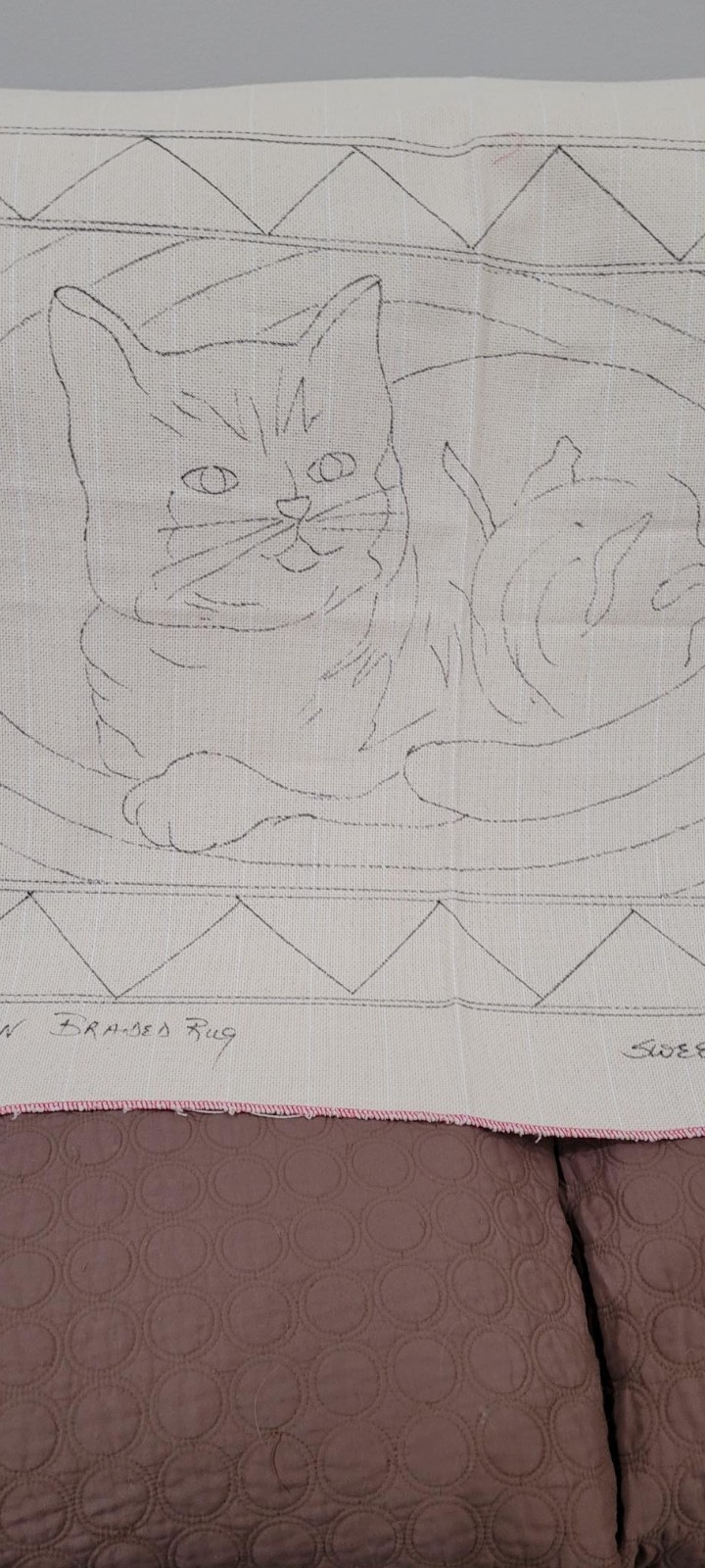 Cat On Braided Rug Hooking Pattern 24 x36 on Monks Cloth