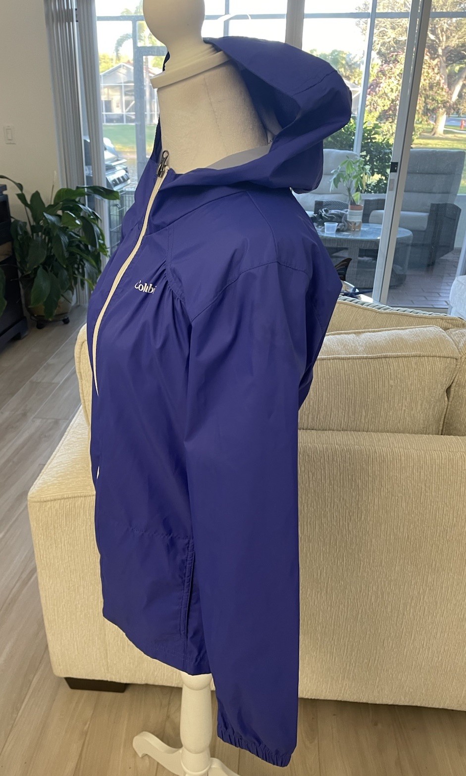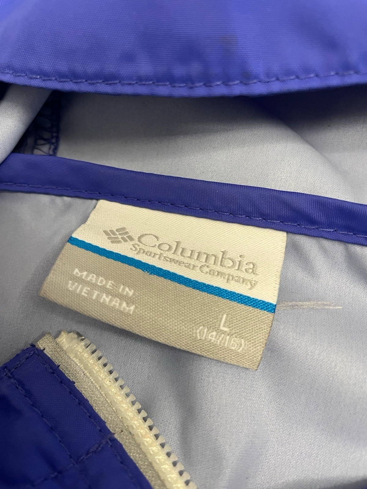 как выглядит Columbia Jacket Girls Large 14/16 Purple Hooded Rain Windbreaker Full Zip RG3427 фото