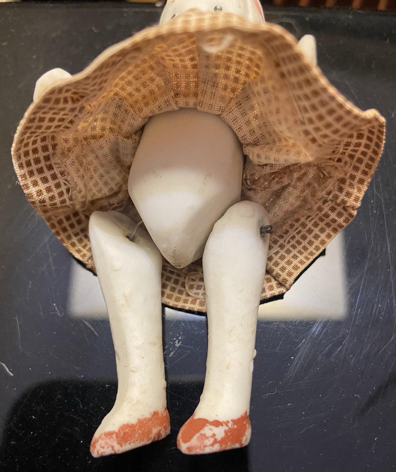 ANTIQUE Wire Jointed Bisque Porcelain Girl Doll 3 With Dress Pink Bow