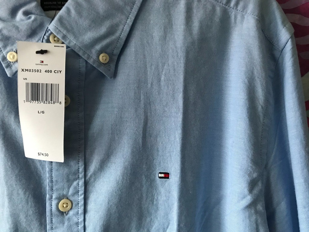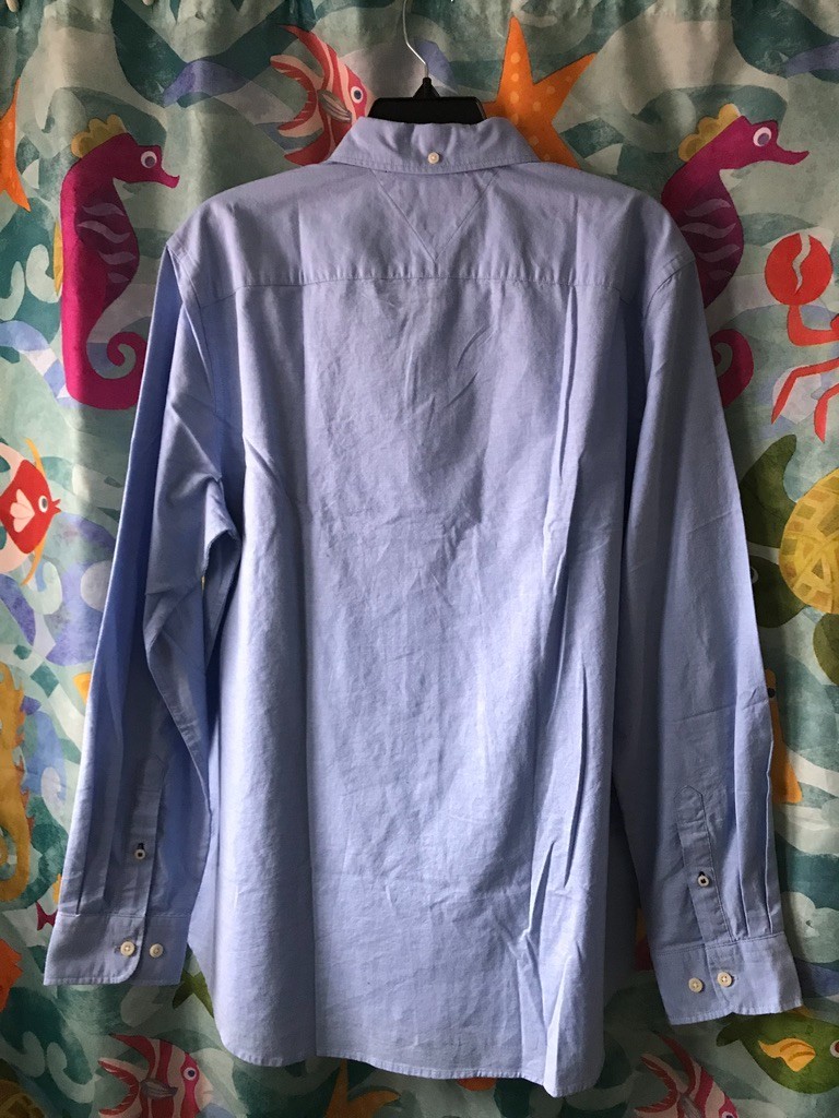 как выглядит NWT Mens Tommy Hilfiger Blue Stretch Oxford Cotton Long Sleeve Shirt Large фото
