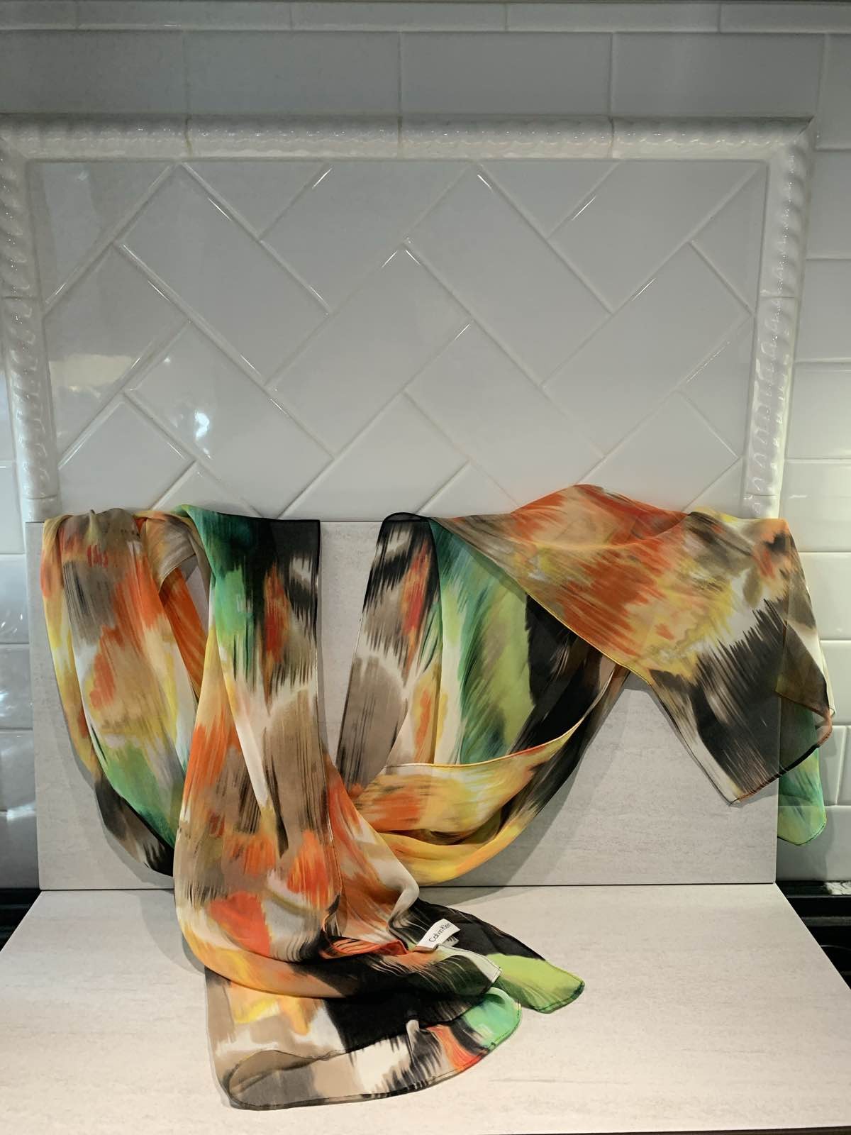 как выглядит Calvin Klein Womens Abstract Modern Multicolor Sheer Wrap Scarf фото