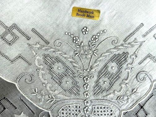 как выглядит VINTAGE HANKY HANKIE BRODE MAIN NEW WHITE EMBROIDERY HANDWORK TAGS BUTTERFLY фото