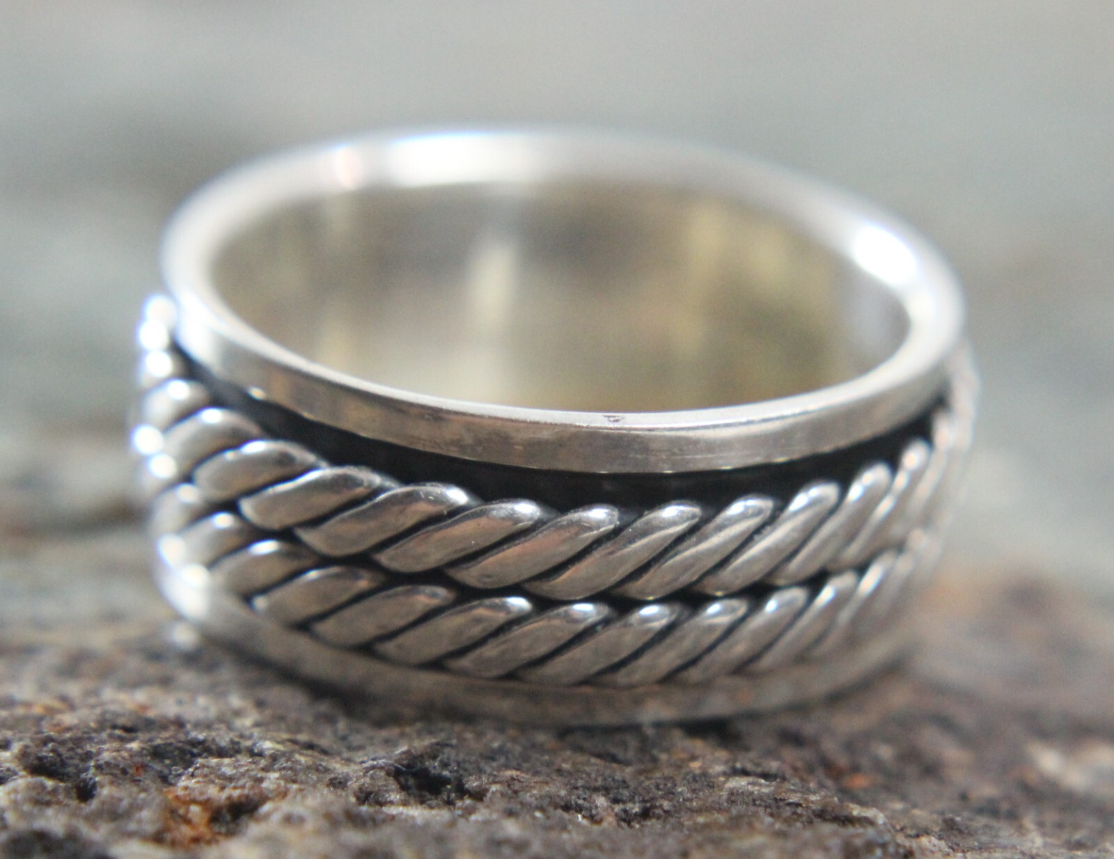 Braided Twist Twin Rope Spinner Wide Band Ring Size 7.5 925 Sterling Silver