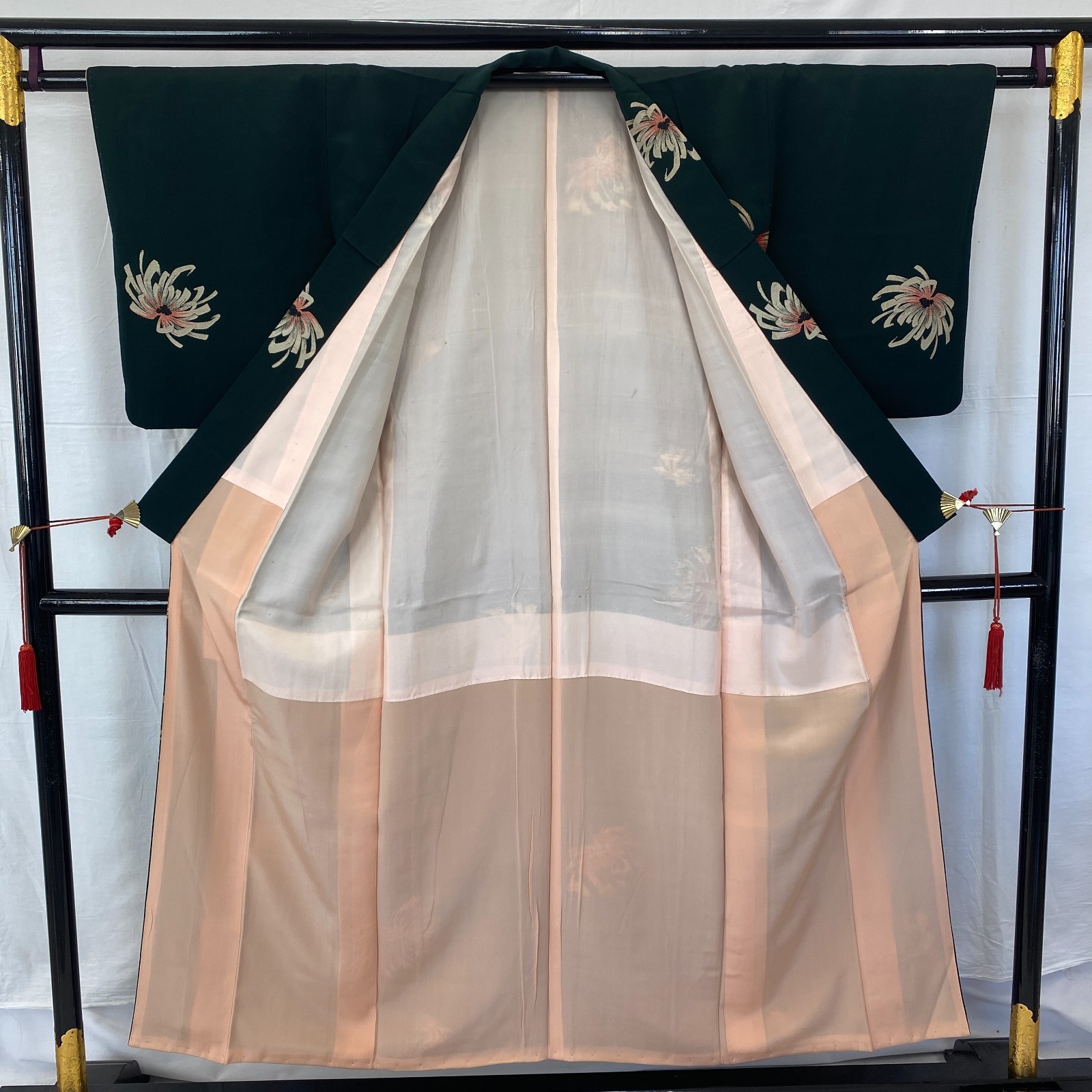 как выглядит Japanese Vintage Kimono Silk Green Komon Traditional Authentic Length 59 in фото
