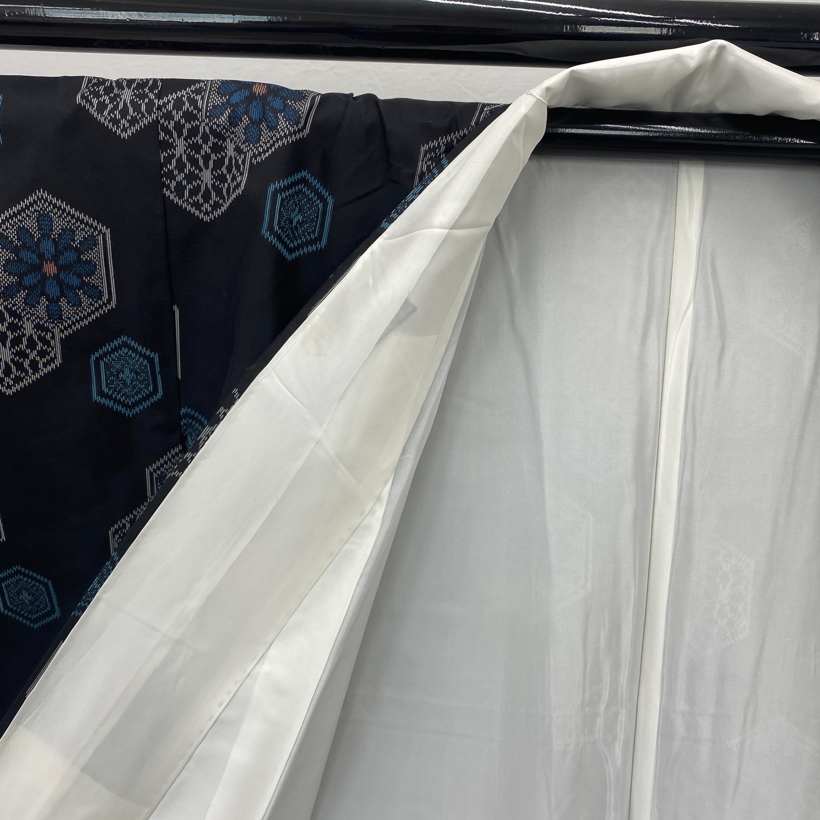как выглядит Japanese Vintage Kimono Silk Black Oshima Traditional Authentic Length 63 in фото
