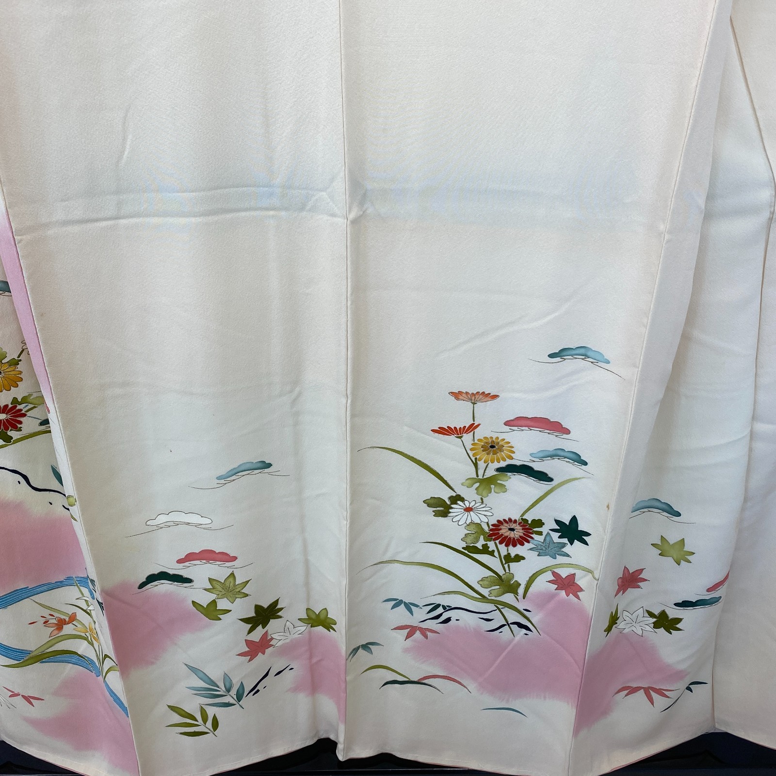 Japanese Vintage Kimono Silk White Homongi Family Crest Traditional Length 59 in
