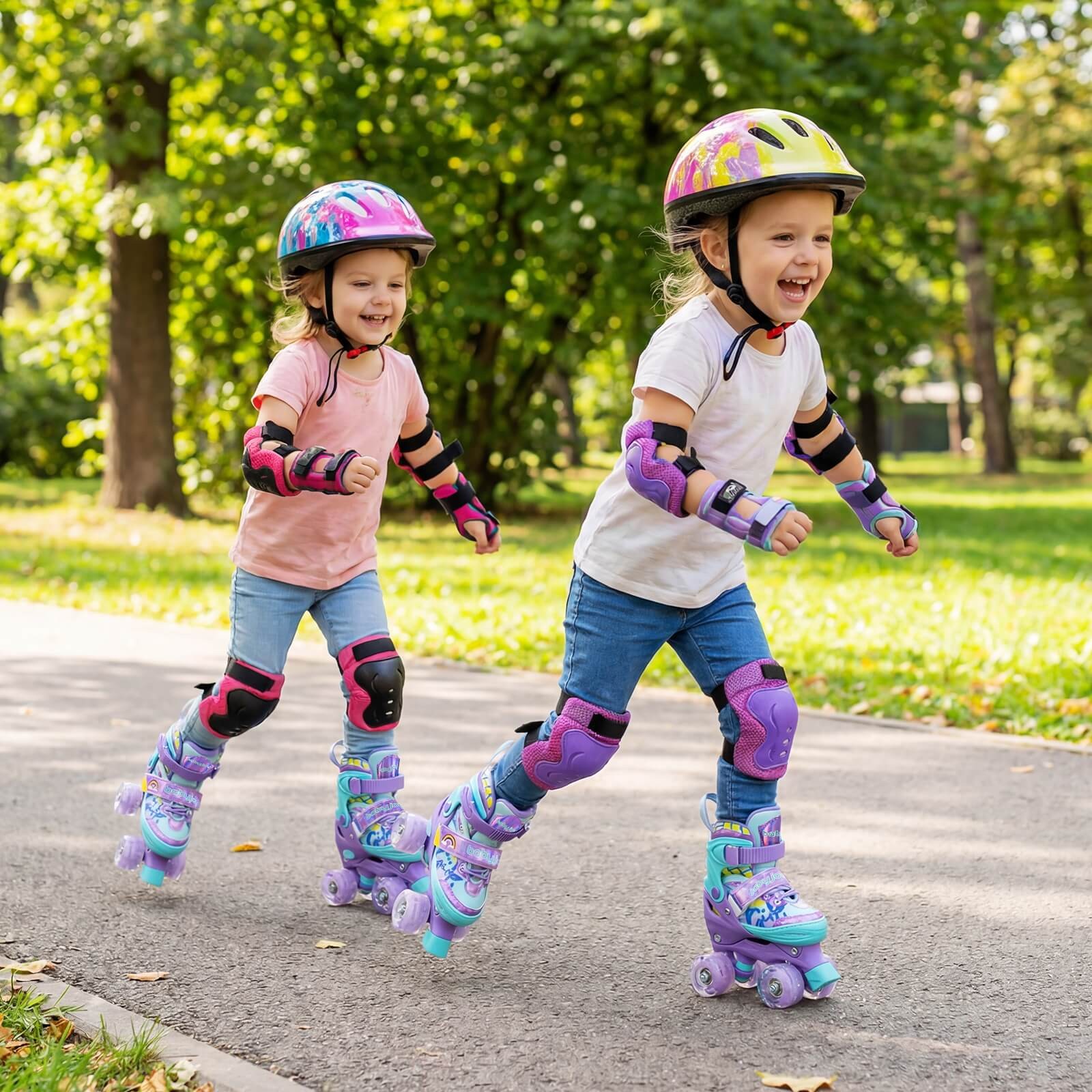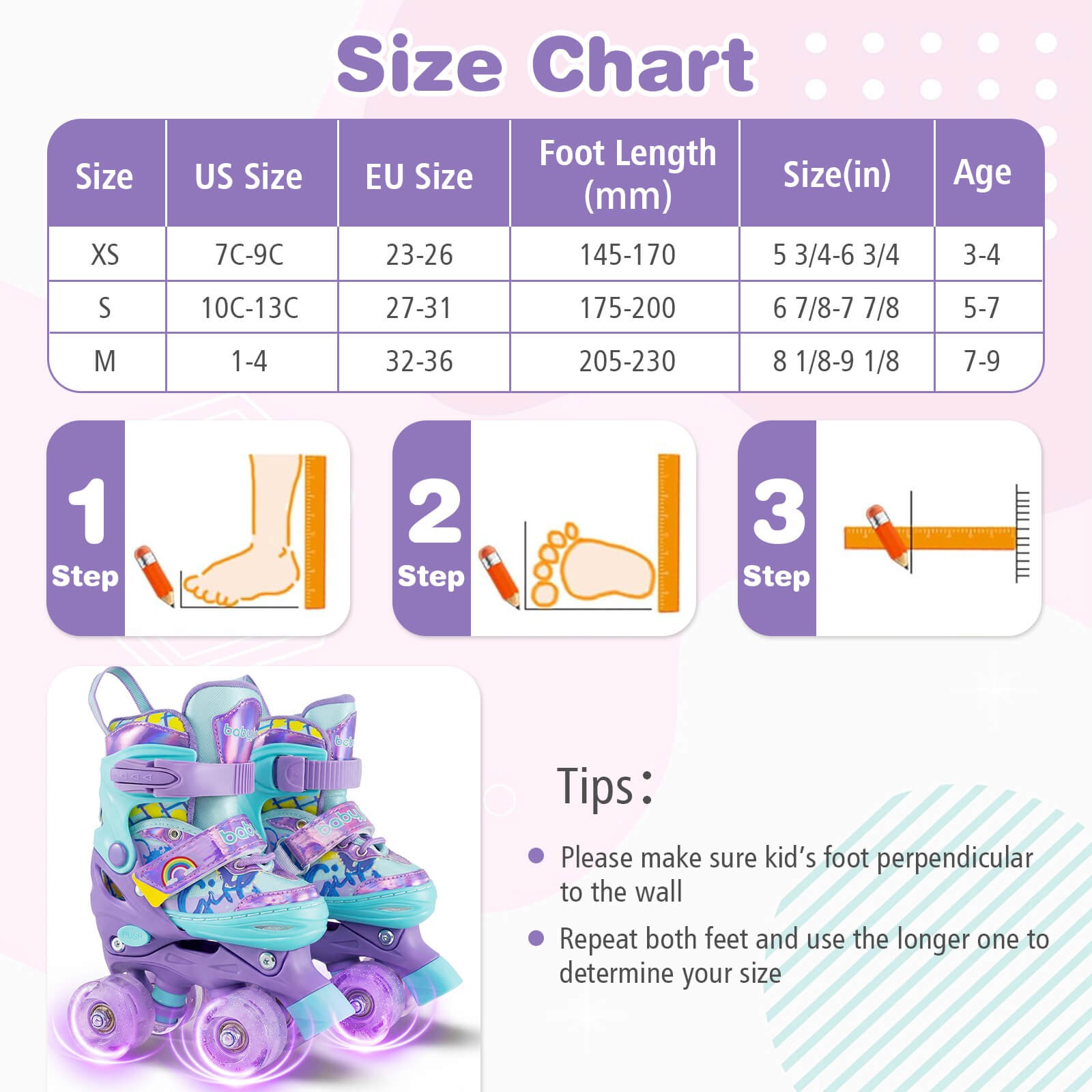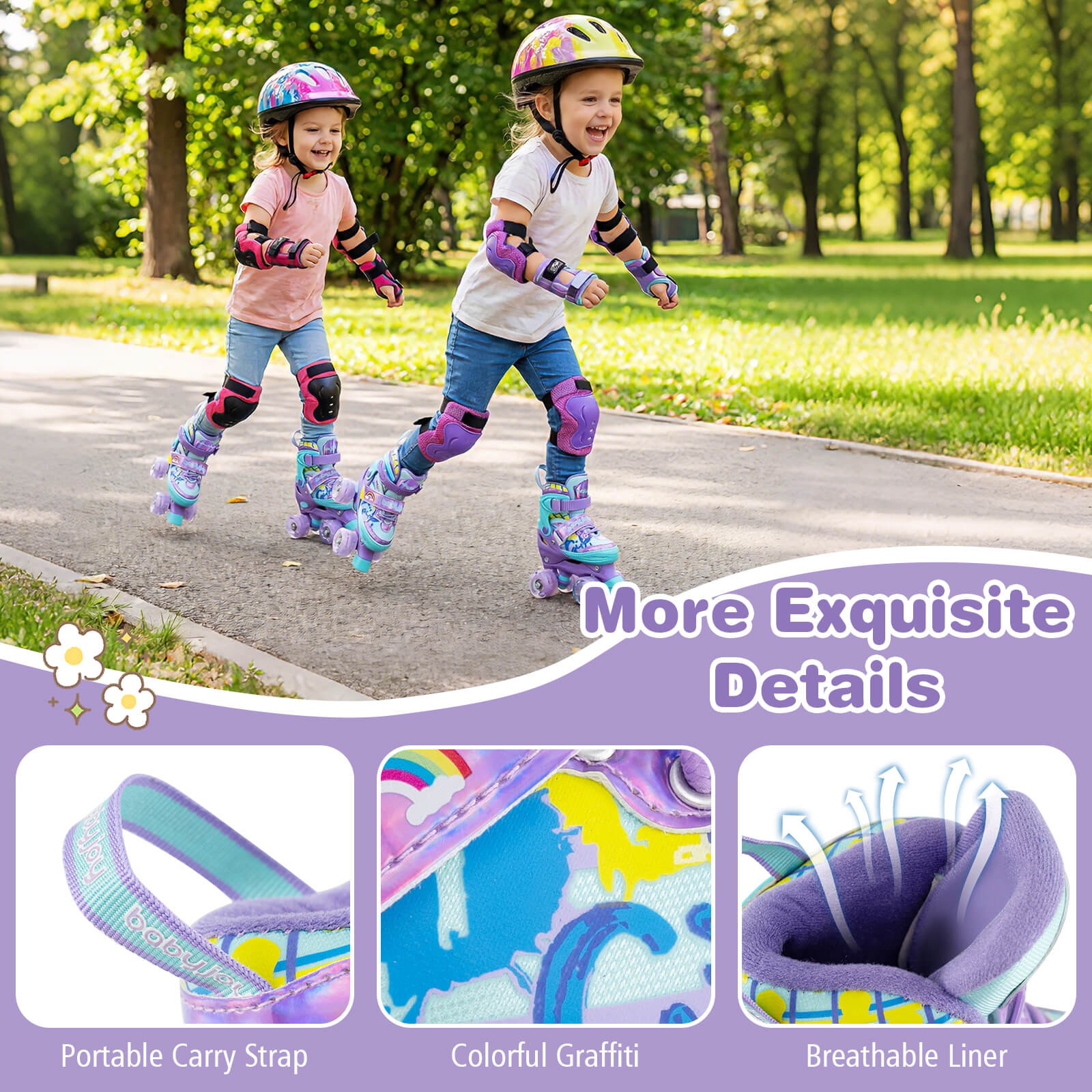 4 Sizes Adjustable Quad Skates w/Light-up Wheels Safety Protection for Beginners