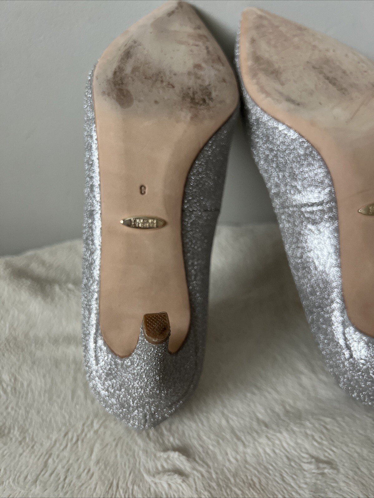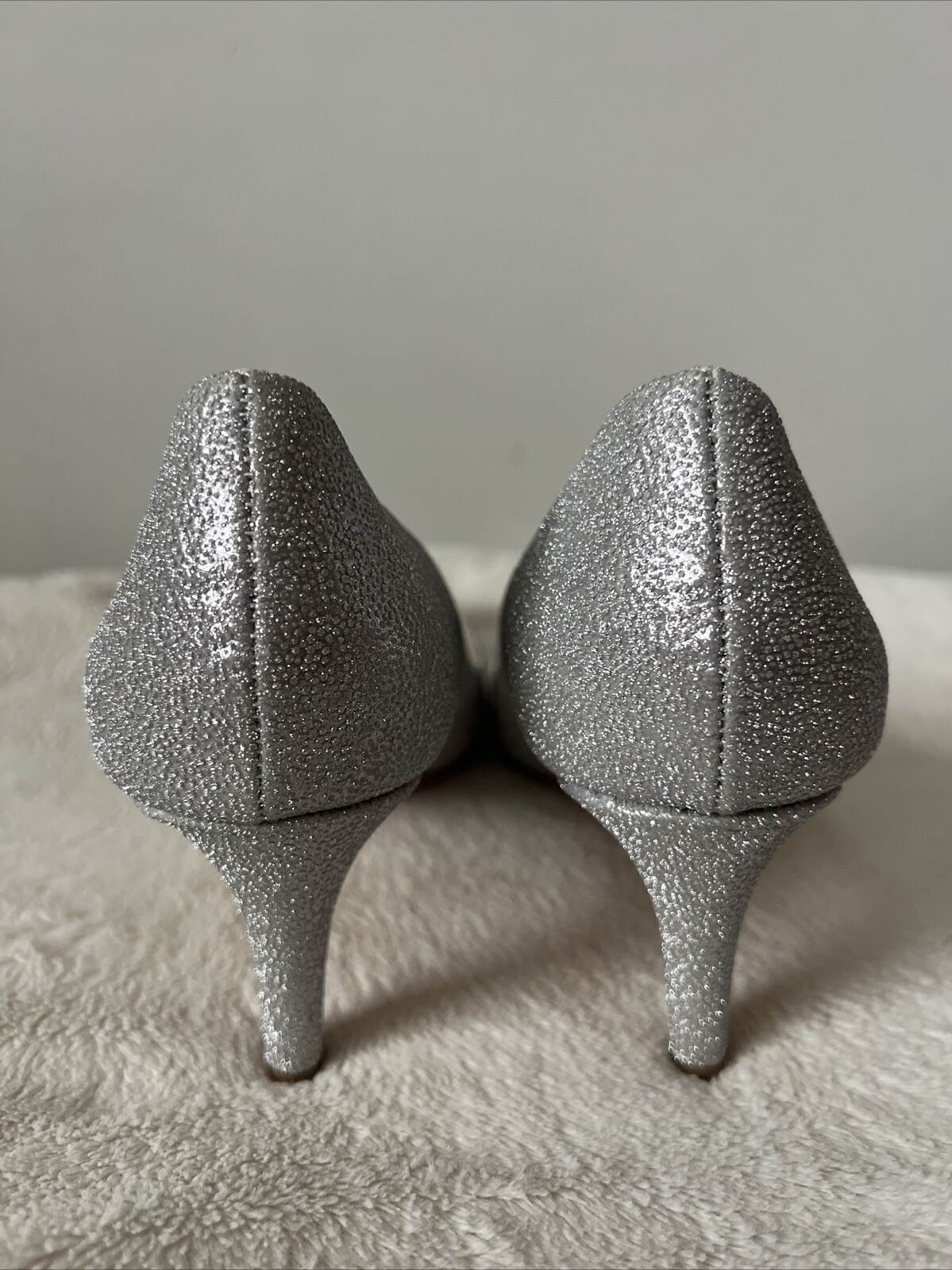 Badgley Mischka Women s Size 8 Carrie Silver Glitter Pump Heels Brooch