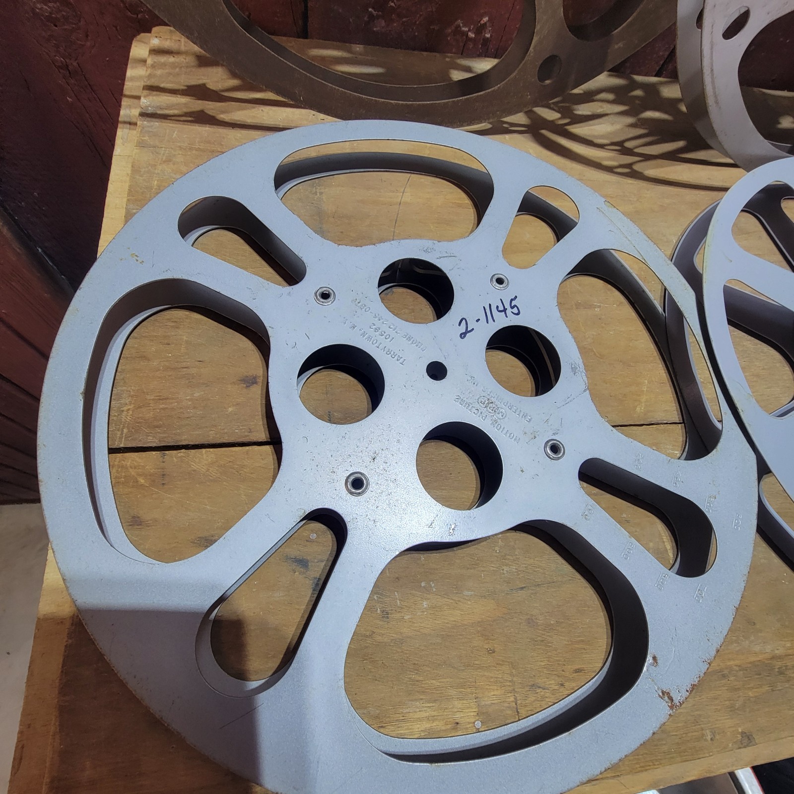 как выглядит LOT OF 4 VINTAGE METAL FILM REELS 13 3/4" - 12 1/4" - 10 1/2" MISC BRANDS MOVIE фото