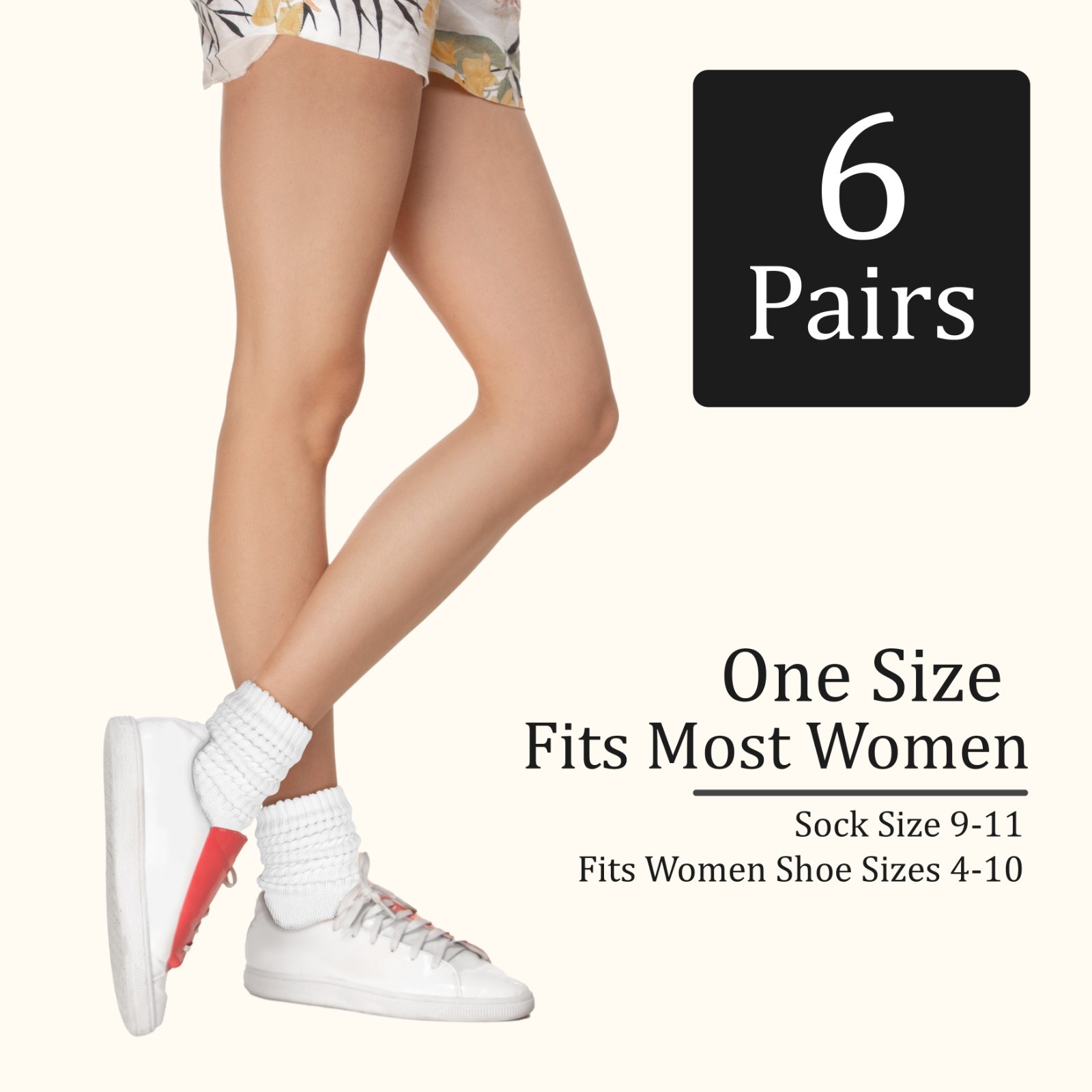 6 Pair Scrunch Crew Slouch Cotton Womens Socks Ribbed Soft Retro Boot Calf Sock