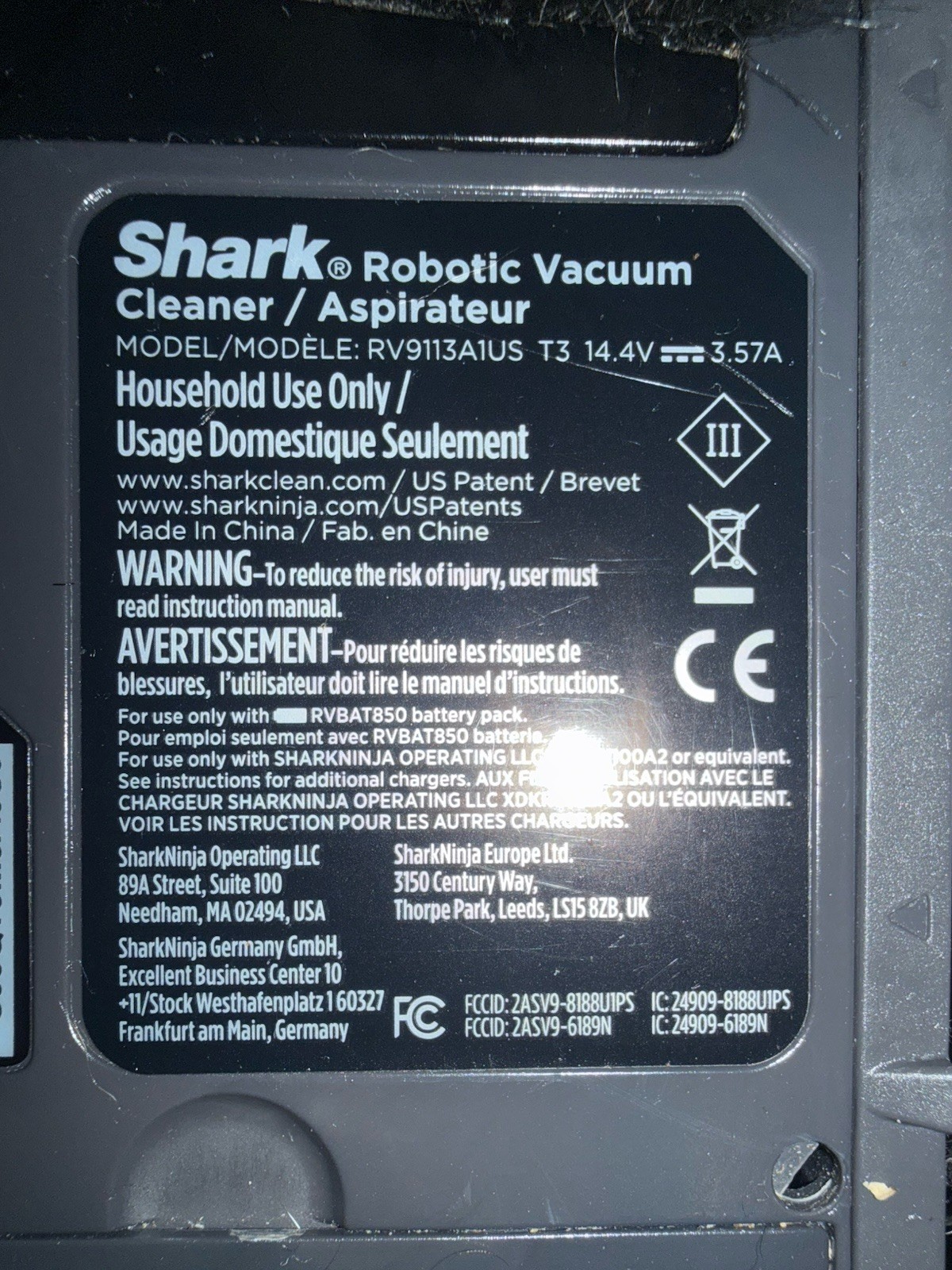 Shark EZ Robot Self Empty XL Robot Vacuum Cleaner Model RV9113
