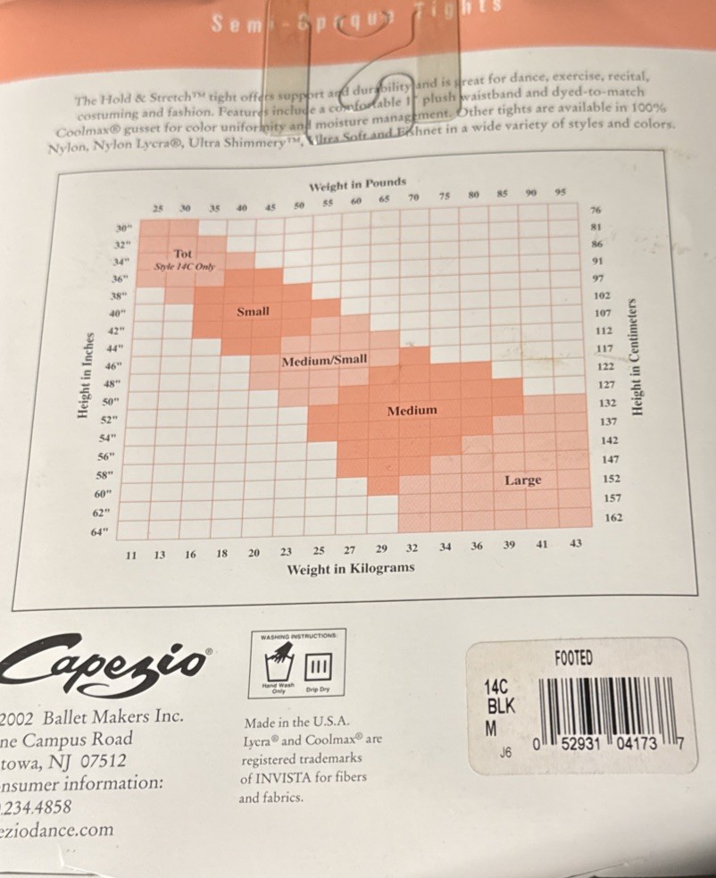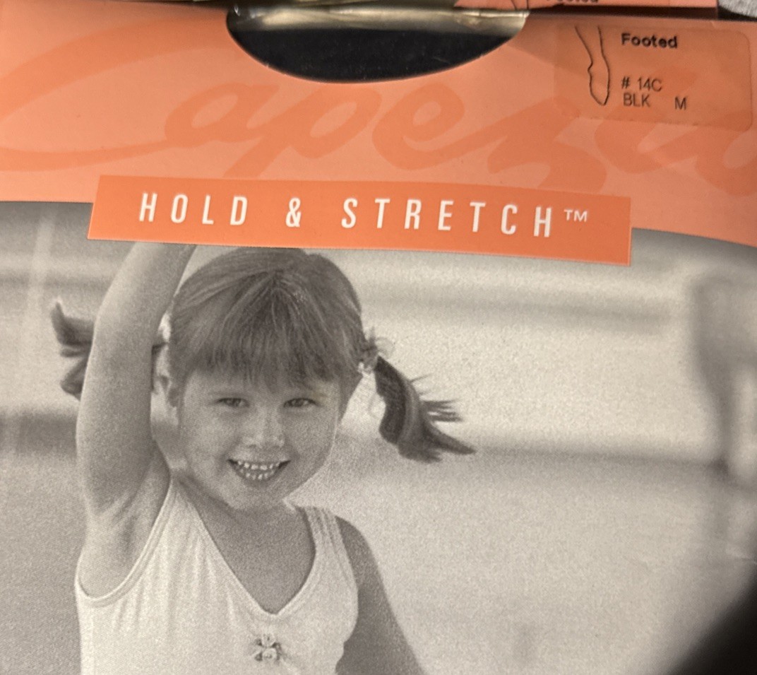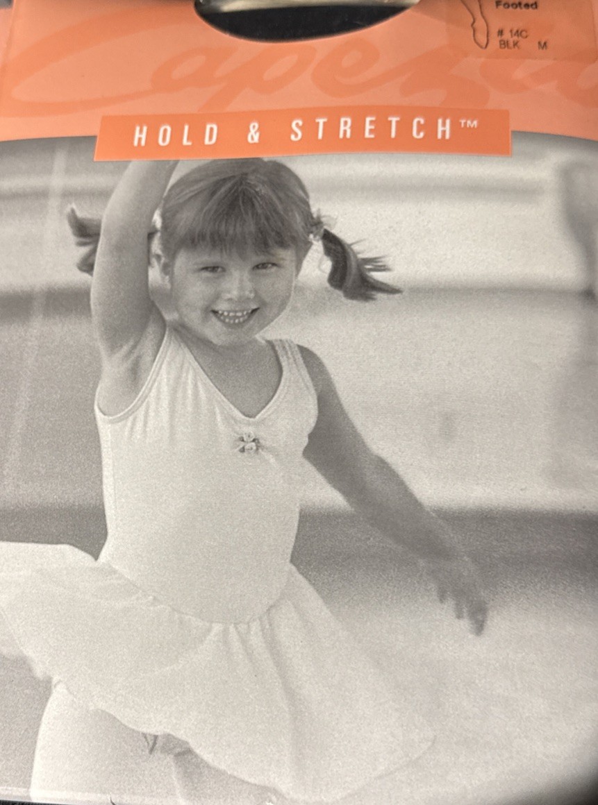 CAPEZIO Children's HOLD STRETCH Black FOOTED TIGHTS M New Dance BALLET Girls