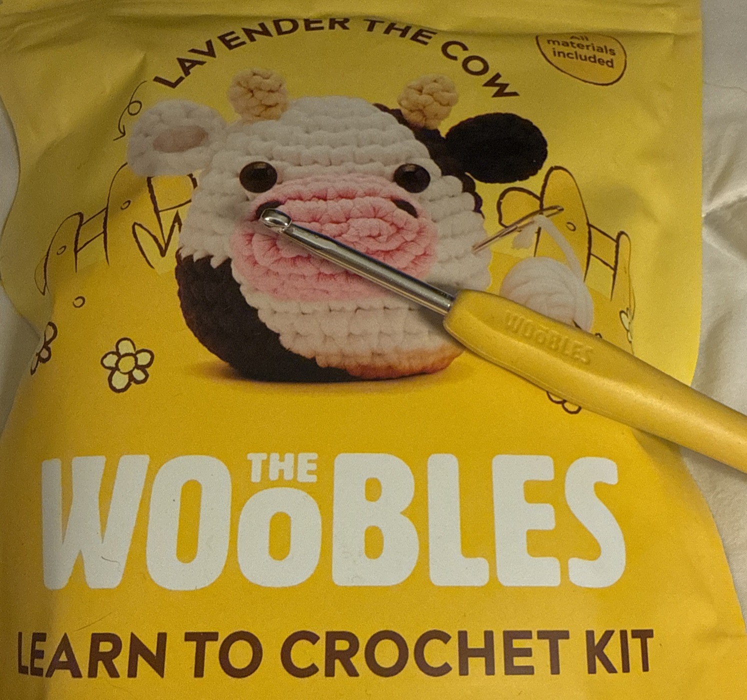 The Woobles Lavender The Cow Crochet Kit With Yellow Lavender Hook New