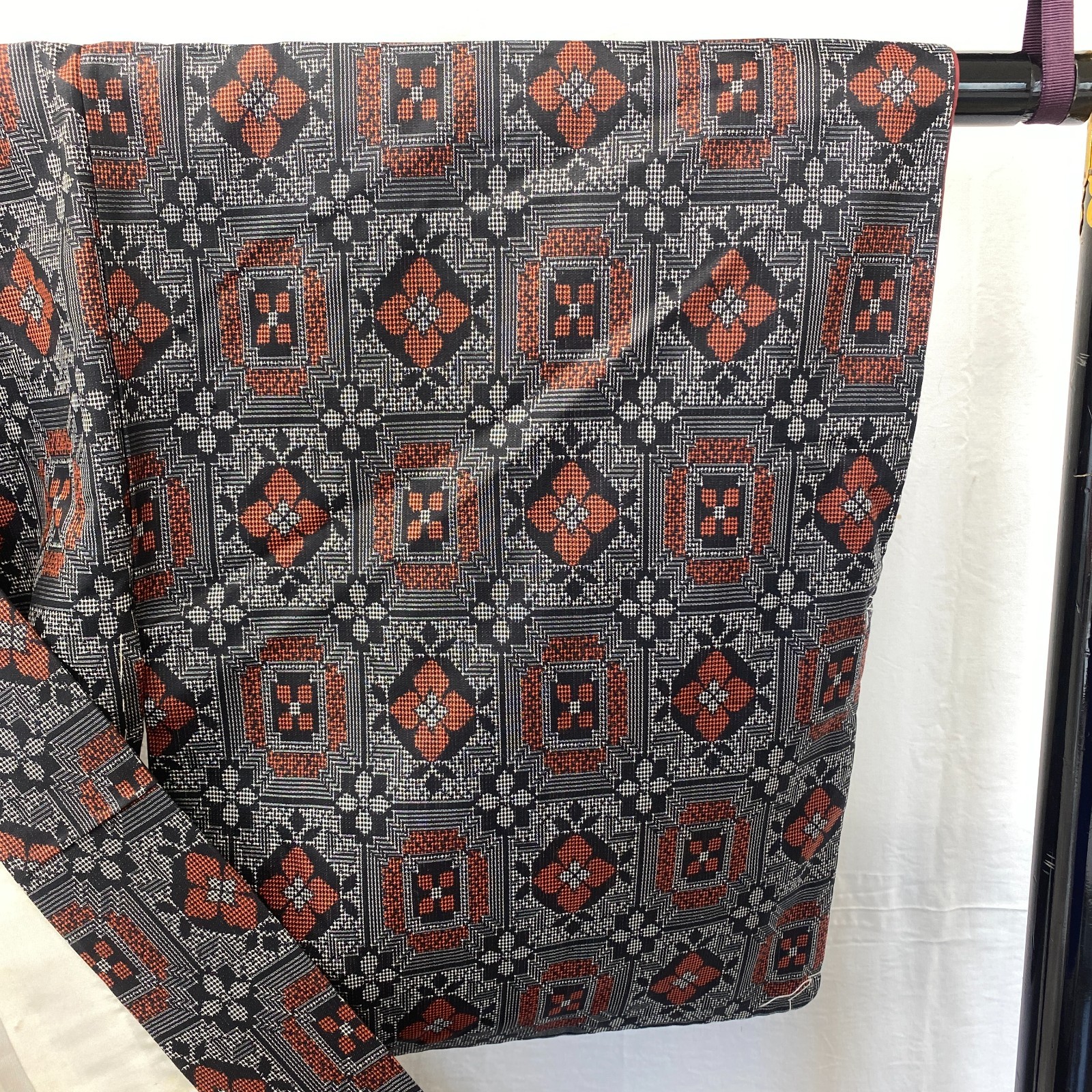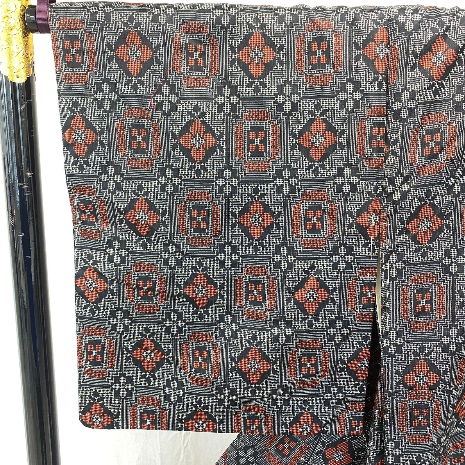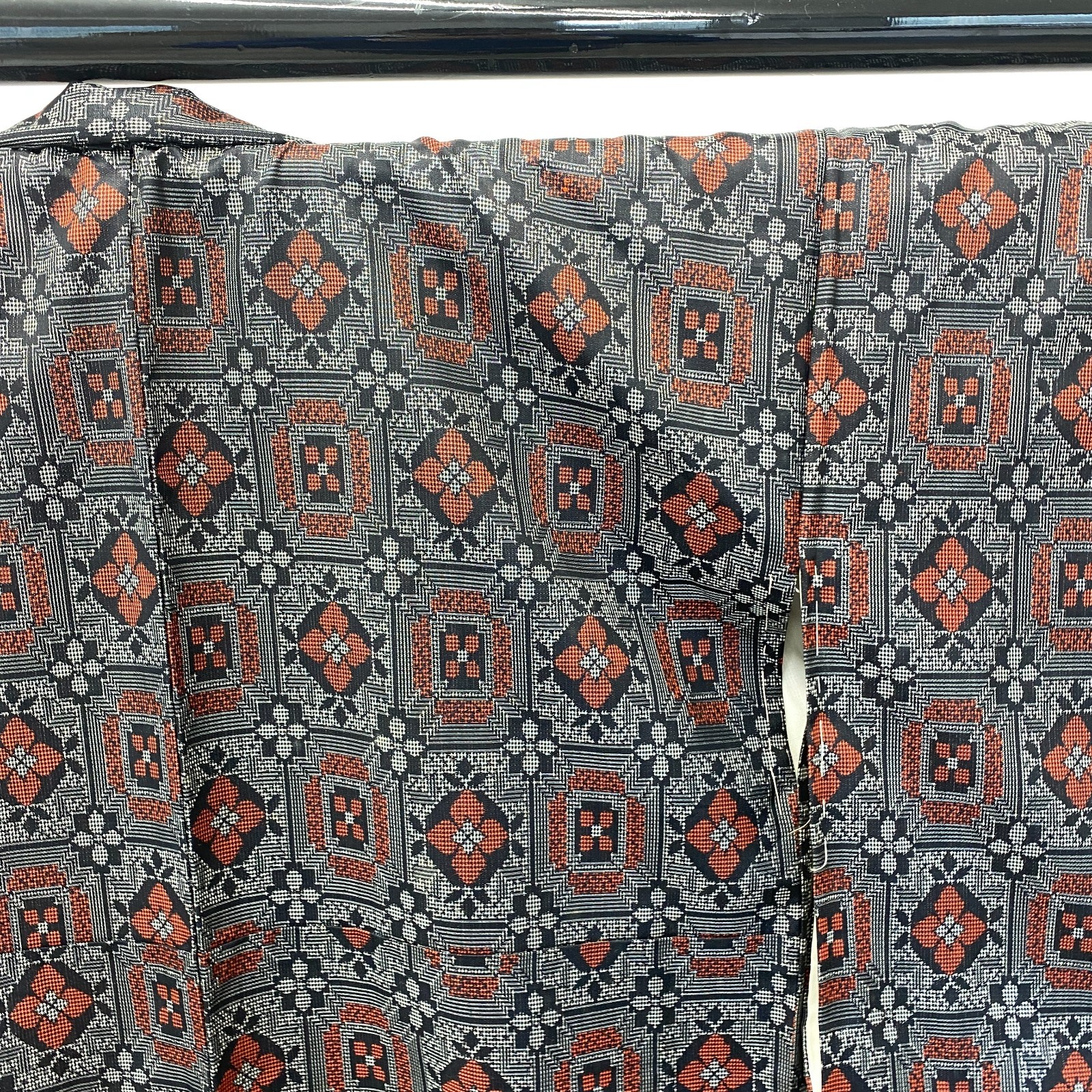 как выглядит Japanese Vintage Kimono Silk Black Oshima Traditional Authentic Length 61 in фото