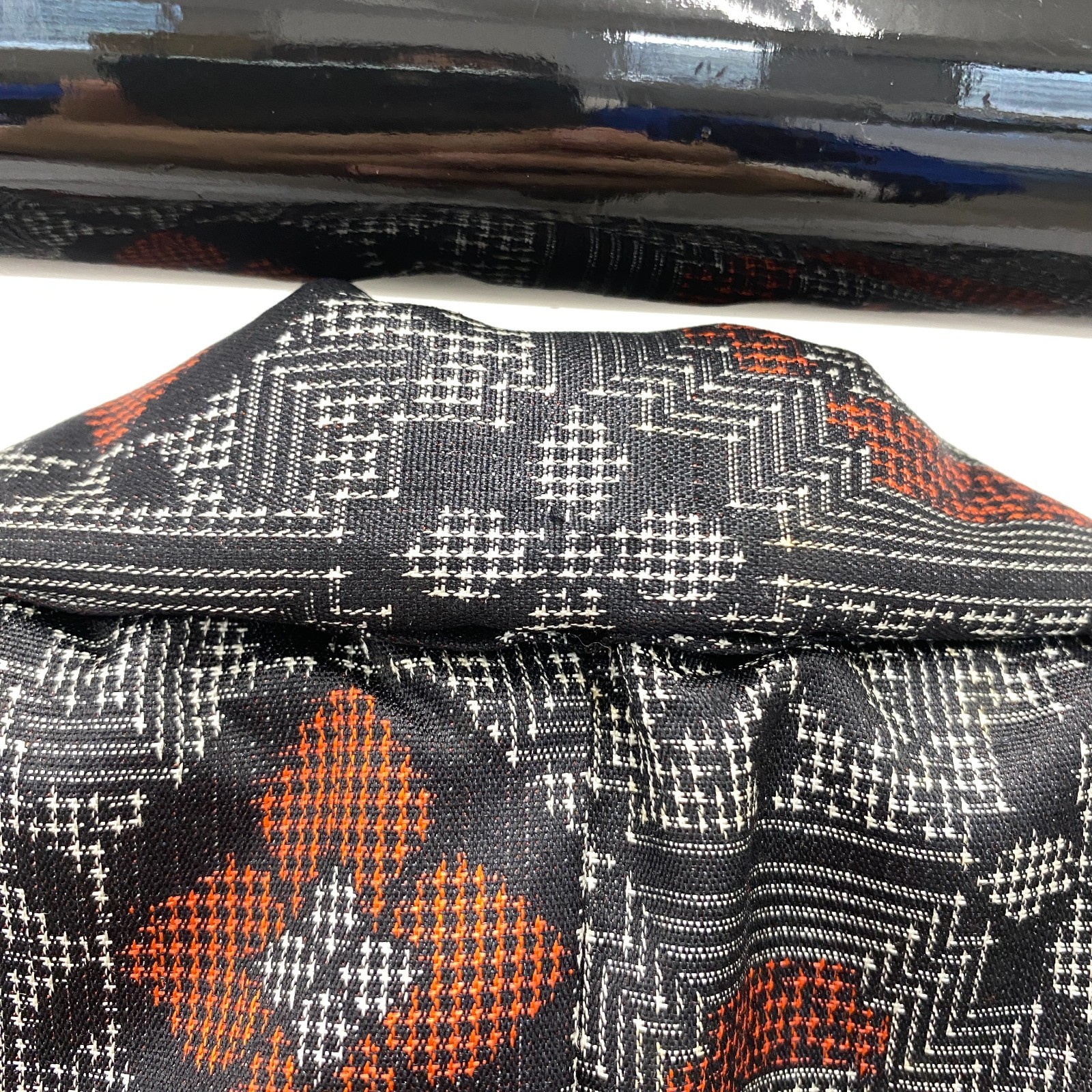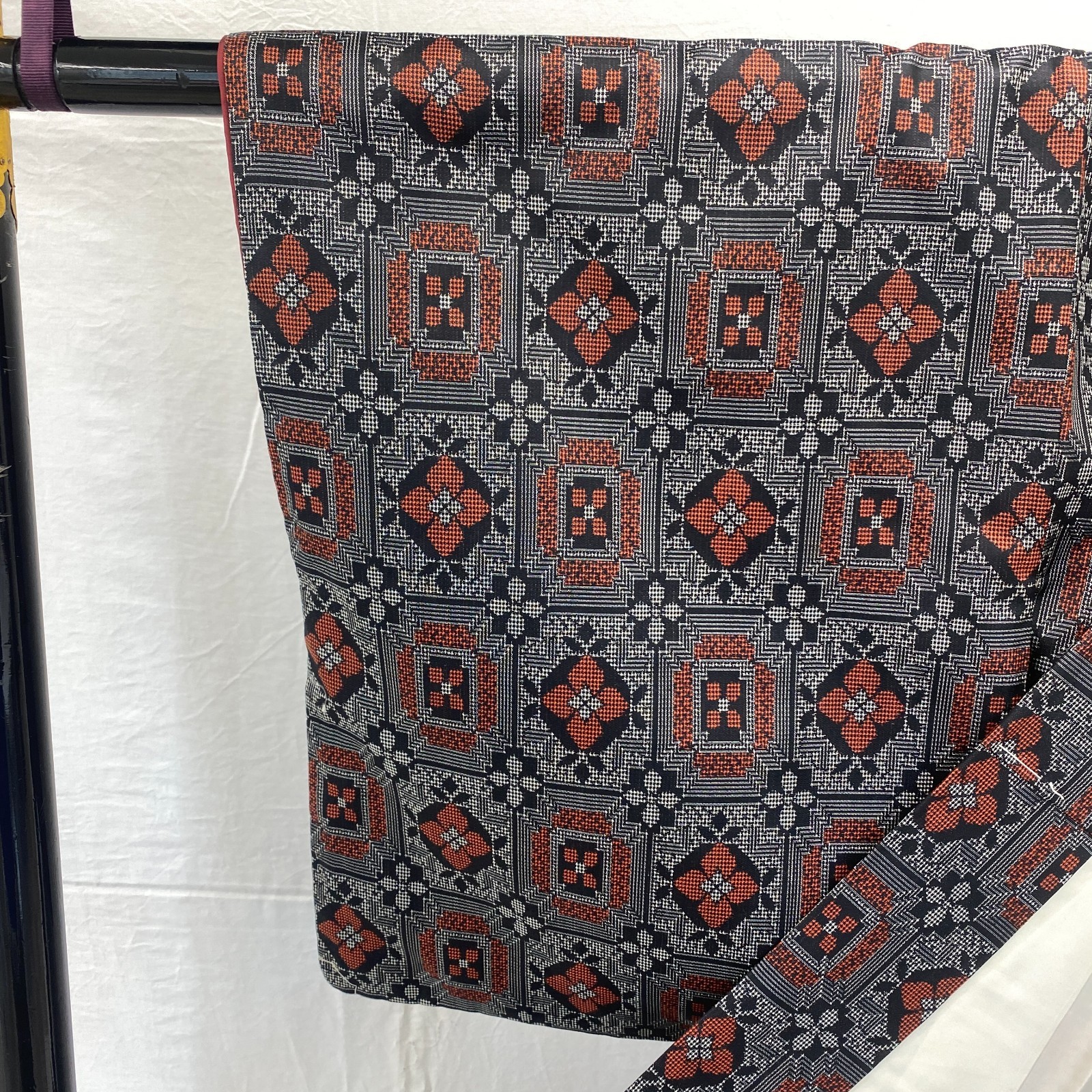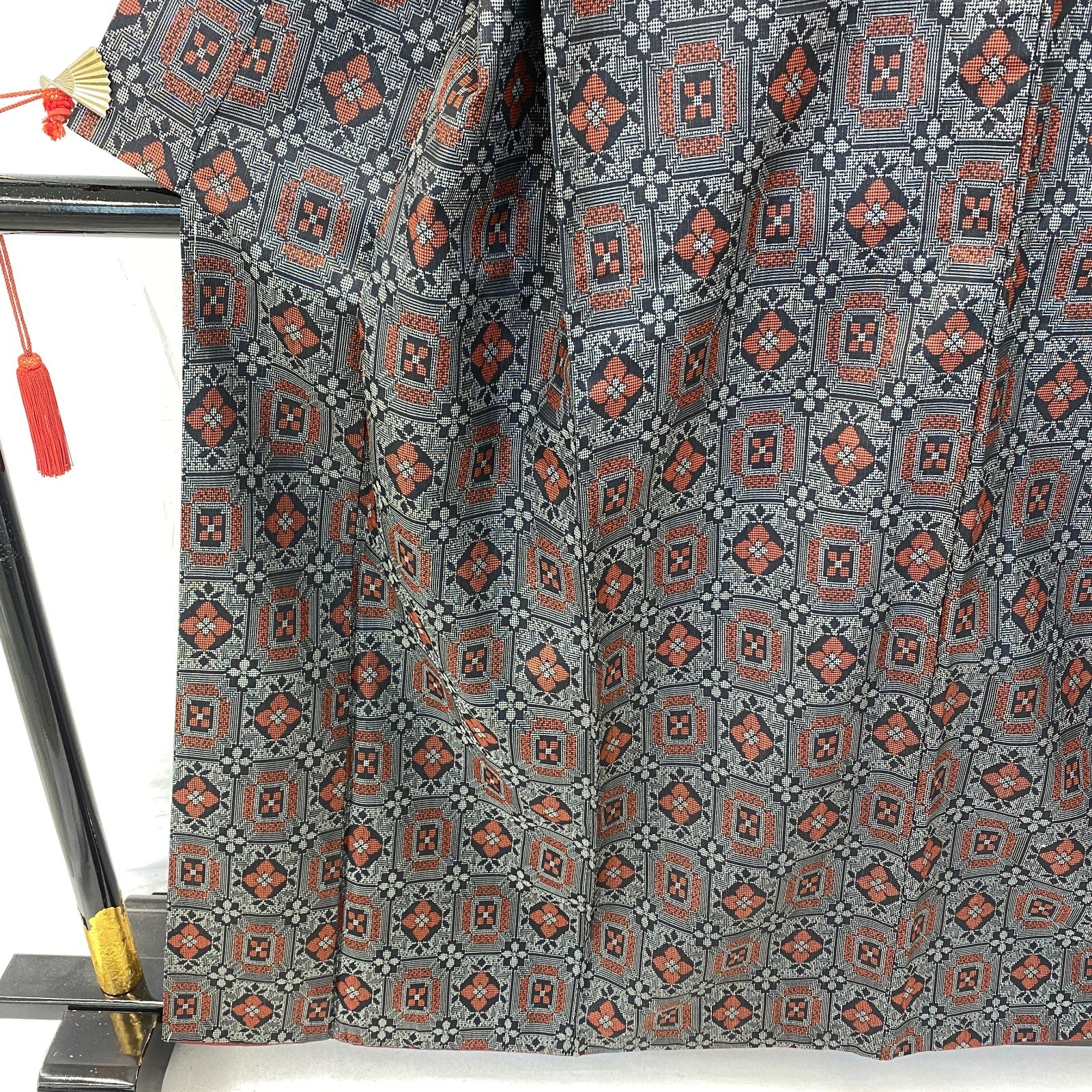 как выглядит Japanese Vintage Kimono Silk Black Oshima Traditional Authentic Length 61 in фото